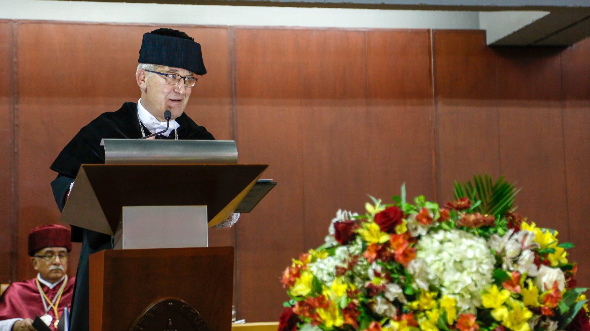 Al respecto, ratificó: “Lo que nos mueve es el amor a la verdad y en esto seguiremos esforzándonos, procurando la mejor formación académica de nuestros profesores, alentando la investigación interdisciplinaria, buscando la internacionalización, siendo valientes en la innovación, y como el milenio en el que nos movemos, a decir de Charles Handy, está signado por el aprendizaje y cambio continuo como estilo de vida, la Universidad está llamada a ser un centro de innovación continua. Por eso, hemos de tener verdadera ilusión de hacer camino al andar, reinventando nuestro saber y fomentando novedosas investigaciones que enriquezcan las ciencias que cultivamos”.