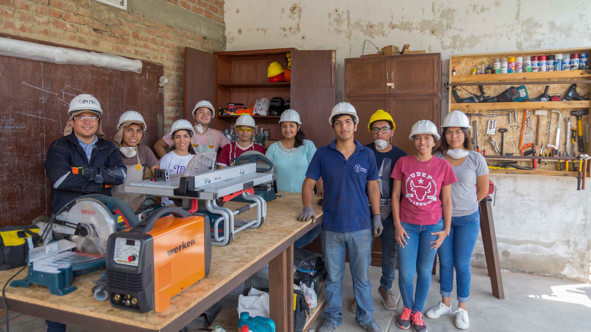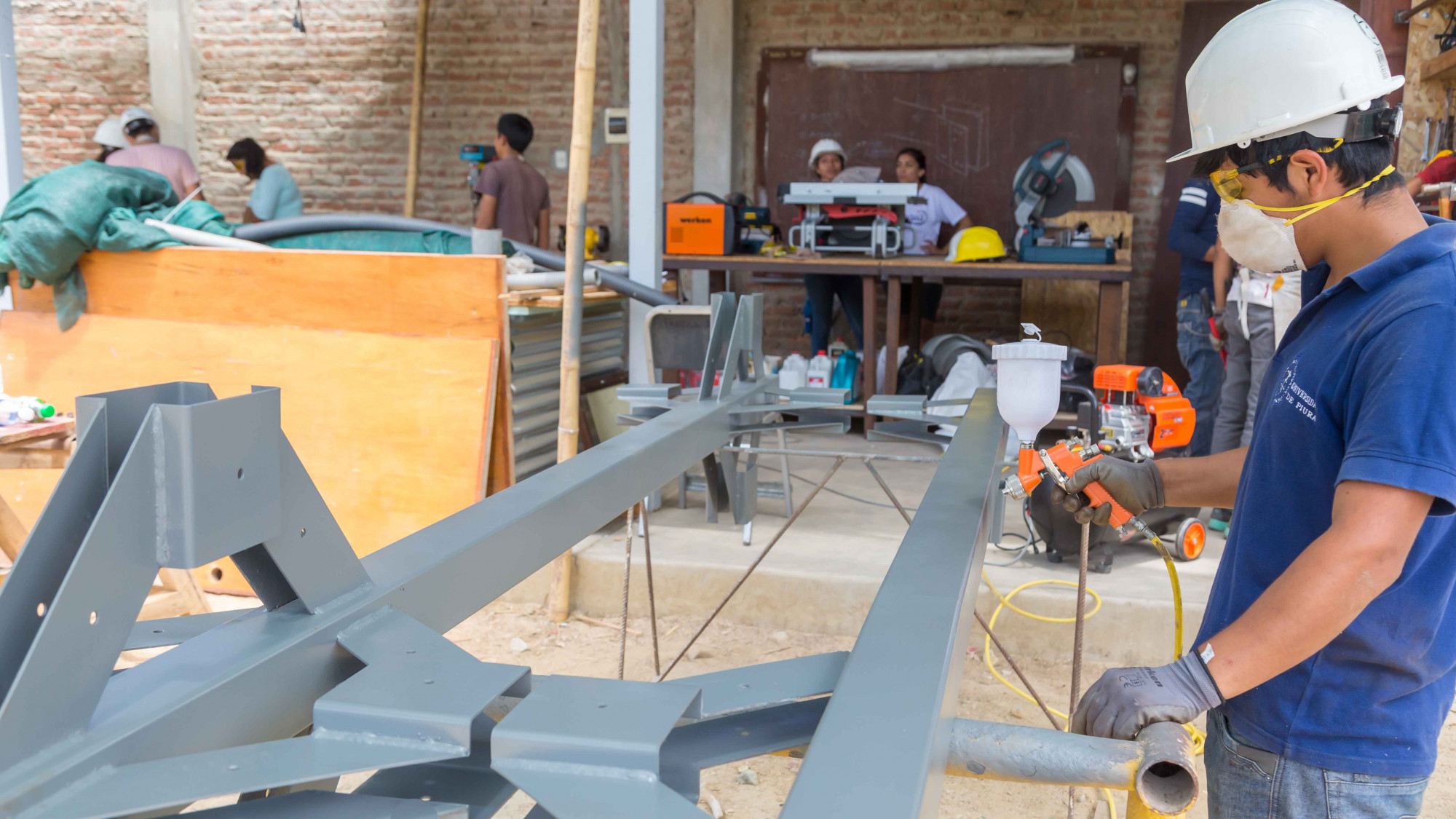 Carlos Pastor, profesor del programa académico de Arquitectura, de la Universidad de Piura, explica que con el financiamiento pudieron realizar compras de maquinarias, pues dijimos: “en vez de mandar a hacer las piezas a la calle, por qué no las fabricamos nosotros, aprendiendo y adiestrándonos con las máquinas. Hoy tenemos un equipo vasto para un taller básico de fabricación. Los estudiantes que participan ya han llevado Edificaciones 2 y tienen conocimiento avanzado de las máquinas, así como de los implementos de seguridad, siempre en los casos de trabajos medianos o pequeños. La fabricación mayor, con máquinas, las realiza el profesor con asistentes especializados”.