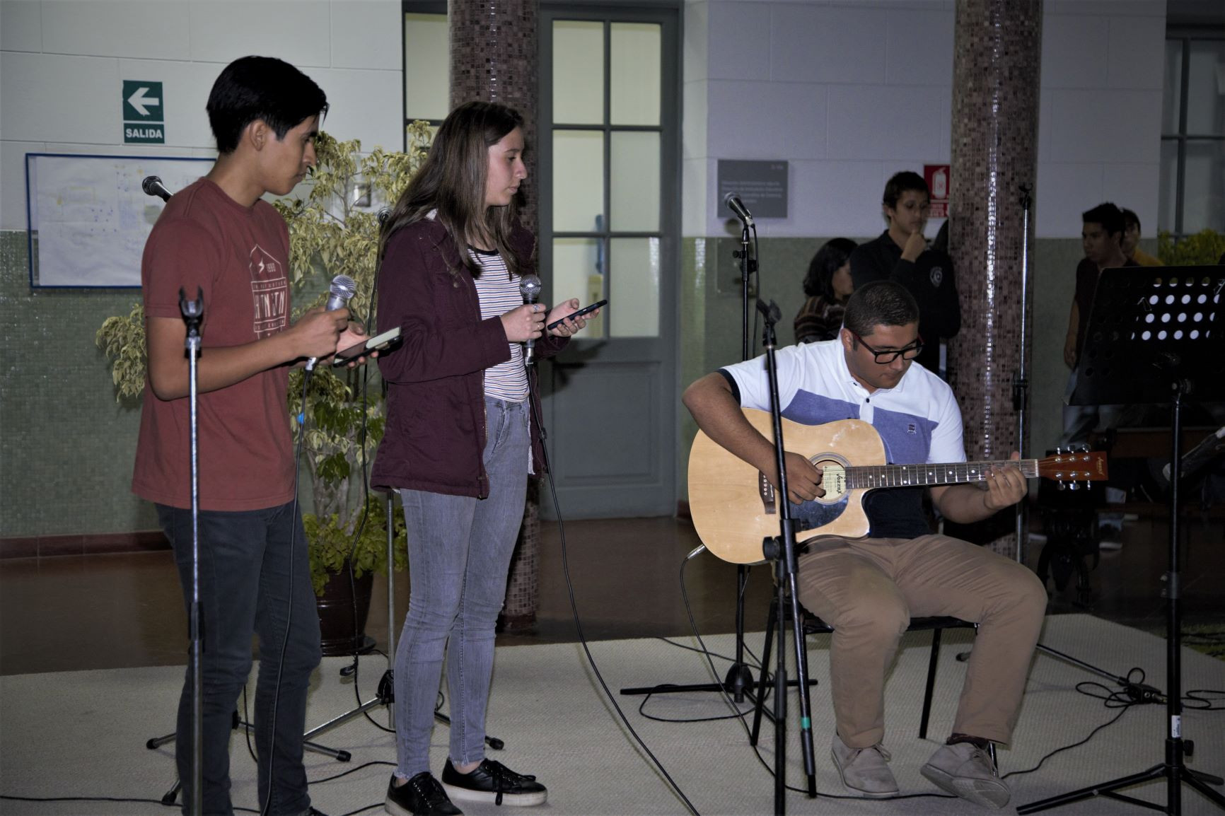 María Fernanda Mendoza y Alberto Santos, alumnos de Ingeniería, encantaron con sus solos de mandolina y guitarra, tocando las canciones “Somewhere over the rainbow” y “Creo en ti”, respectivamente.