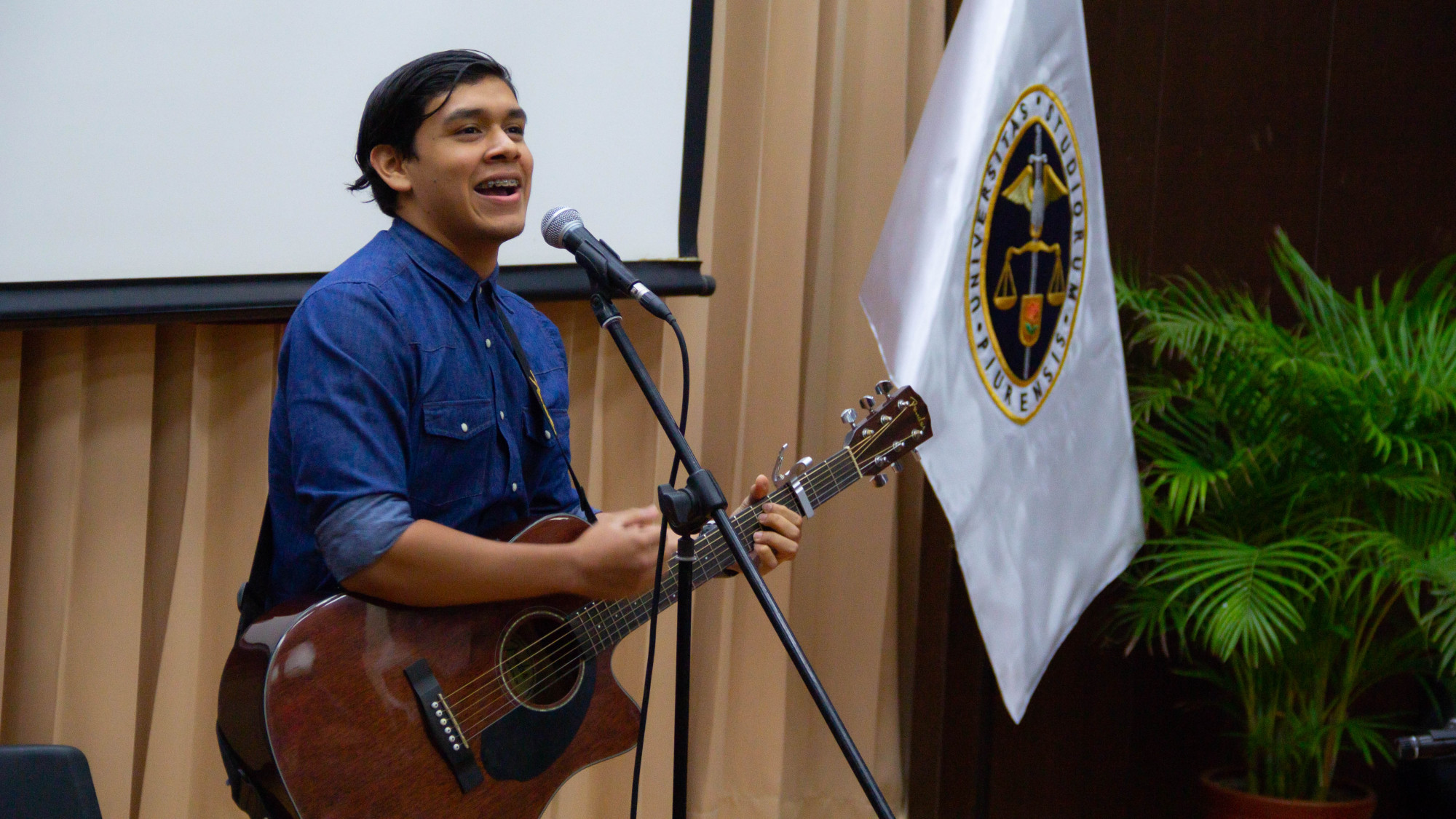 Diego Alejandro Cruz Ríos, de la Facultad de Comunicación, logró el primer puesto con su canción “Vive libre”. “Nunca olvides que eres tú el único dueño de tu vida, de tus sueños y tu andar. Ten cuidado de las malas compañías que te ofrecen soluciones disfrazadas de ilusiones. No confíes, solo son almas vacías, han perdido la esperanza y el orden de sus vidas”, decía una estrofa.