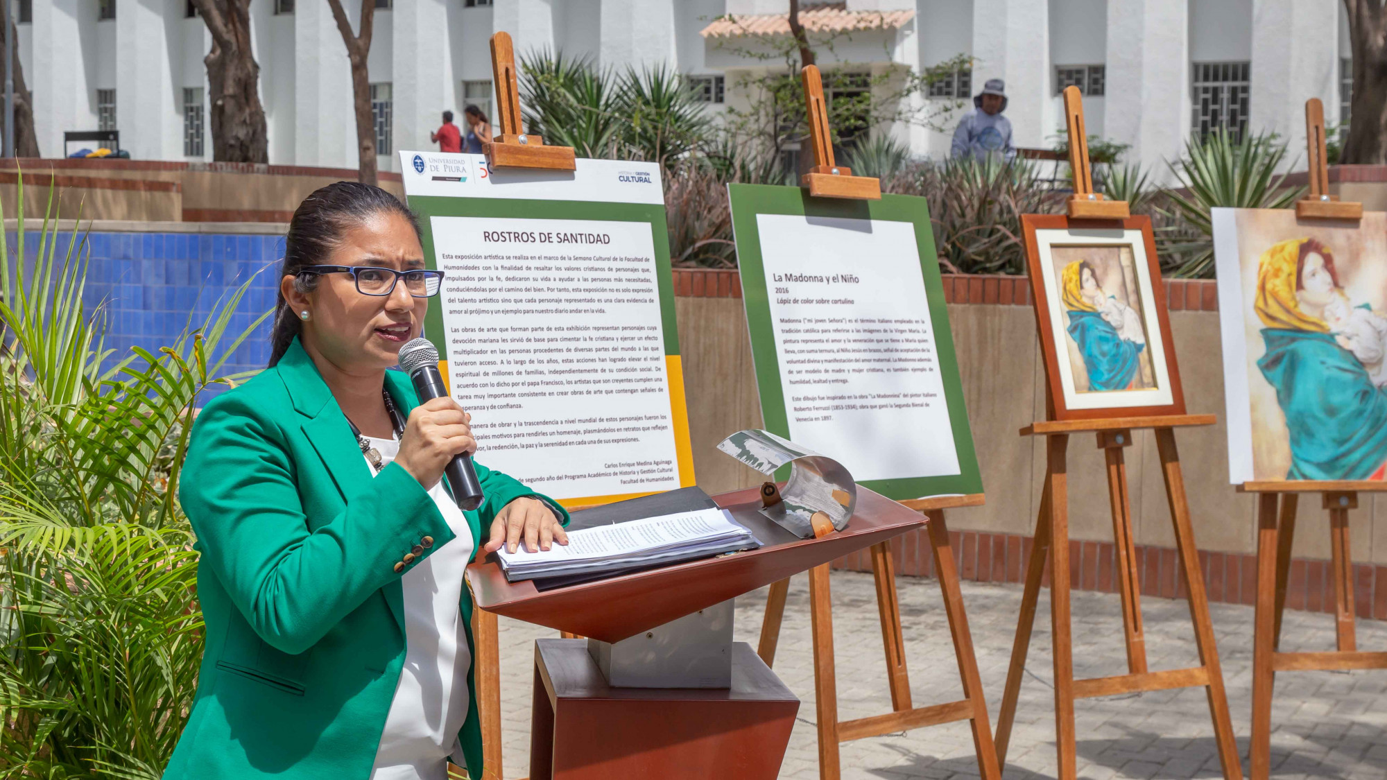 La muestra fue presentada por la magíster Laura Albornoz, directora del programa académico de Historia y Gestión Cultural, quien destacó el talento del artista: “Él ha sabido transmitir un significado, a través de personajes del ámbito religioso cuyas características comunes se convierten en el hilo conductor de esta exposición: la devoción mariana y la heroicidad de las virtudes humanas. De allí que esta muestra artística nos ponga en contacto con la grandeza y sencillez de vida de sus protagonistas: la Virgen María, San José Obrero, San Juan Bosco, San Josemaría Escrivá de Balaguer y el beato Álvaro del Portillo”
