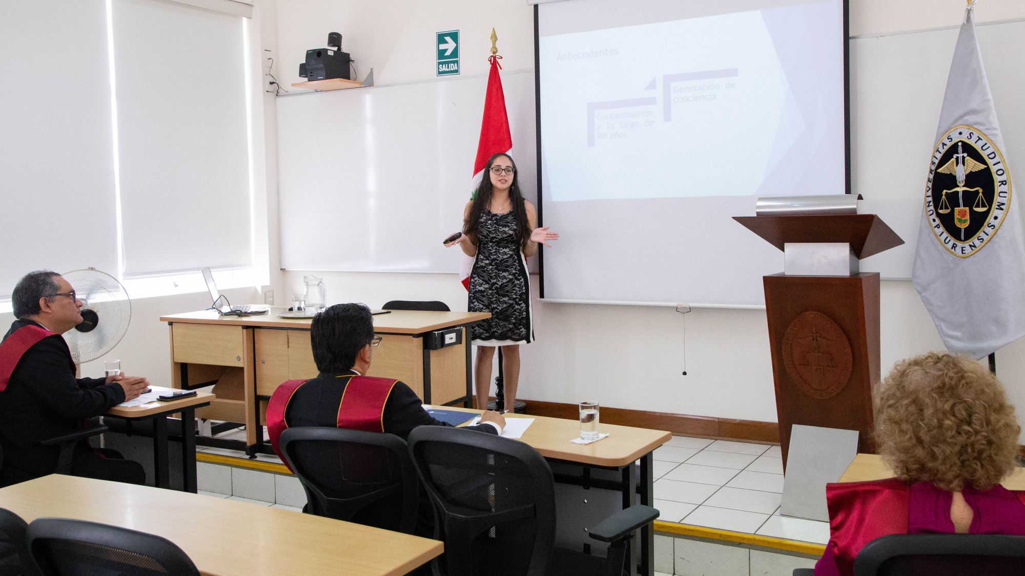 Tras sustentar su tesis “Implementación de un Sistema de Gestión Medioambiental en la Universidad de Piura – Campus Lima basado en la Norma ISO 14001:2015”, Sandra Vargas, egresada de la Facultad de Ingeniería, obtuvo la máxima calificación otorgada por el jurado, conformado por el doctor Eliodoro Carrera y la magíster María Cañas, docentes del programa académico de Ingeniería Industrial y de Sistemas, Campus Lima.