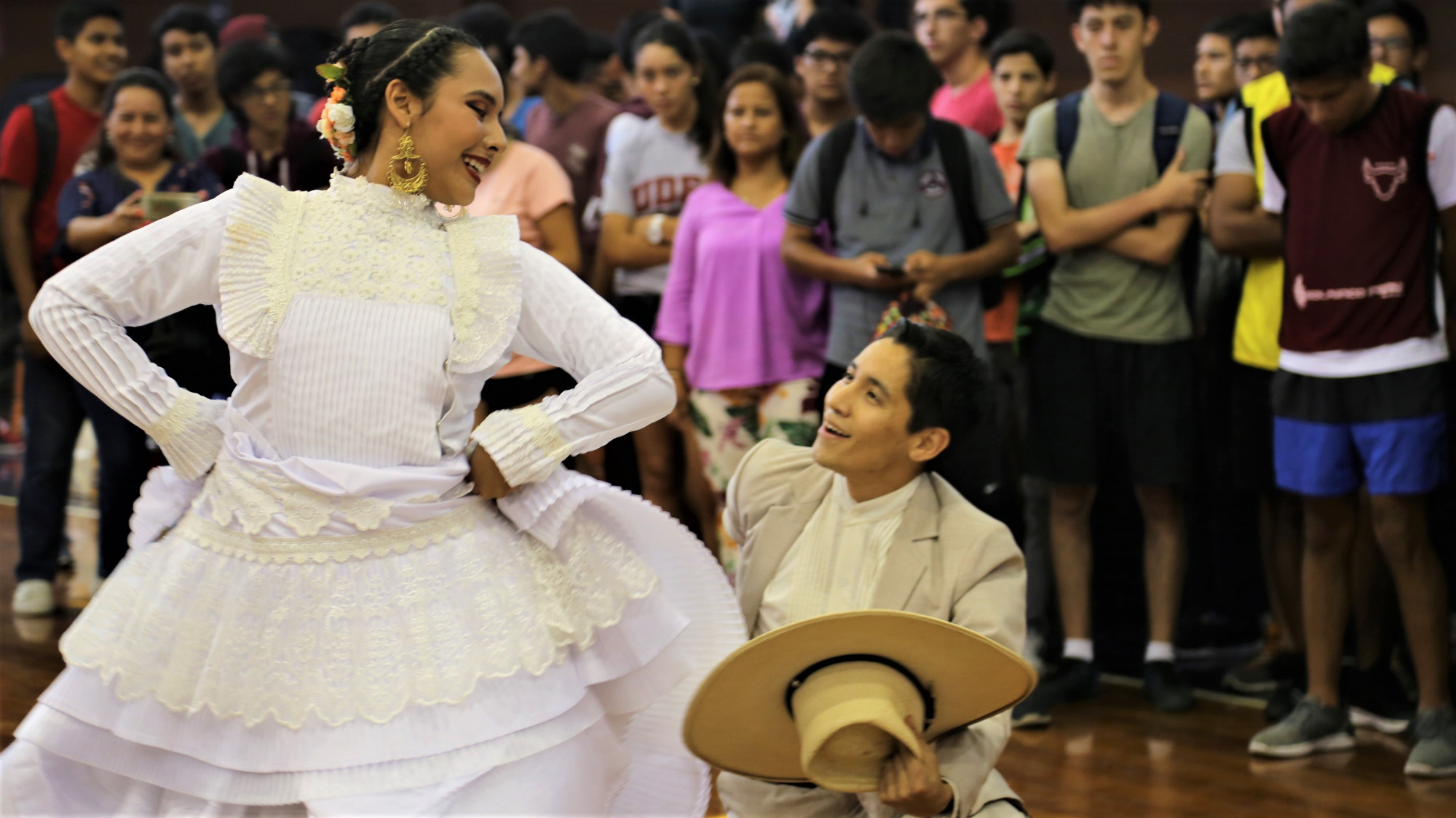 Asimismo, la alumna Luiset Bayona junto a Rubén Ulloa, presentó un espectáculo de marinera. Los trajes tradicionales fueron un vestido huanchaquero blanco y su pareja llevaba un terno blanco mochero.