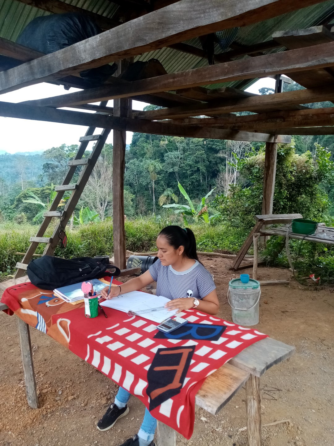 “La noticia del aislamiento social obligatorio la recibí al día siguiente, cuando pude conectarme a Facebook. Donde nos encontramos no hay energía eléctrica, obtenemos energía a través de un panel solar”, cuenta.