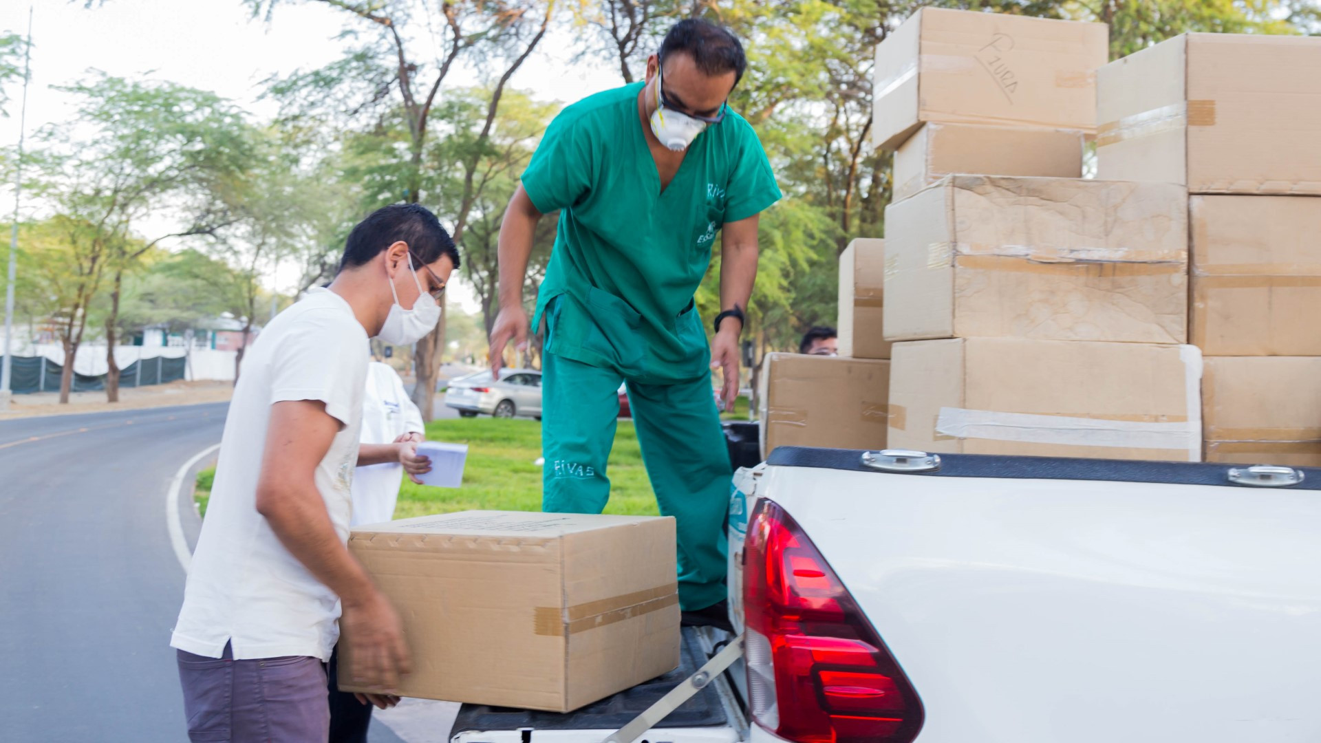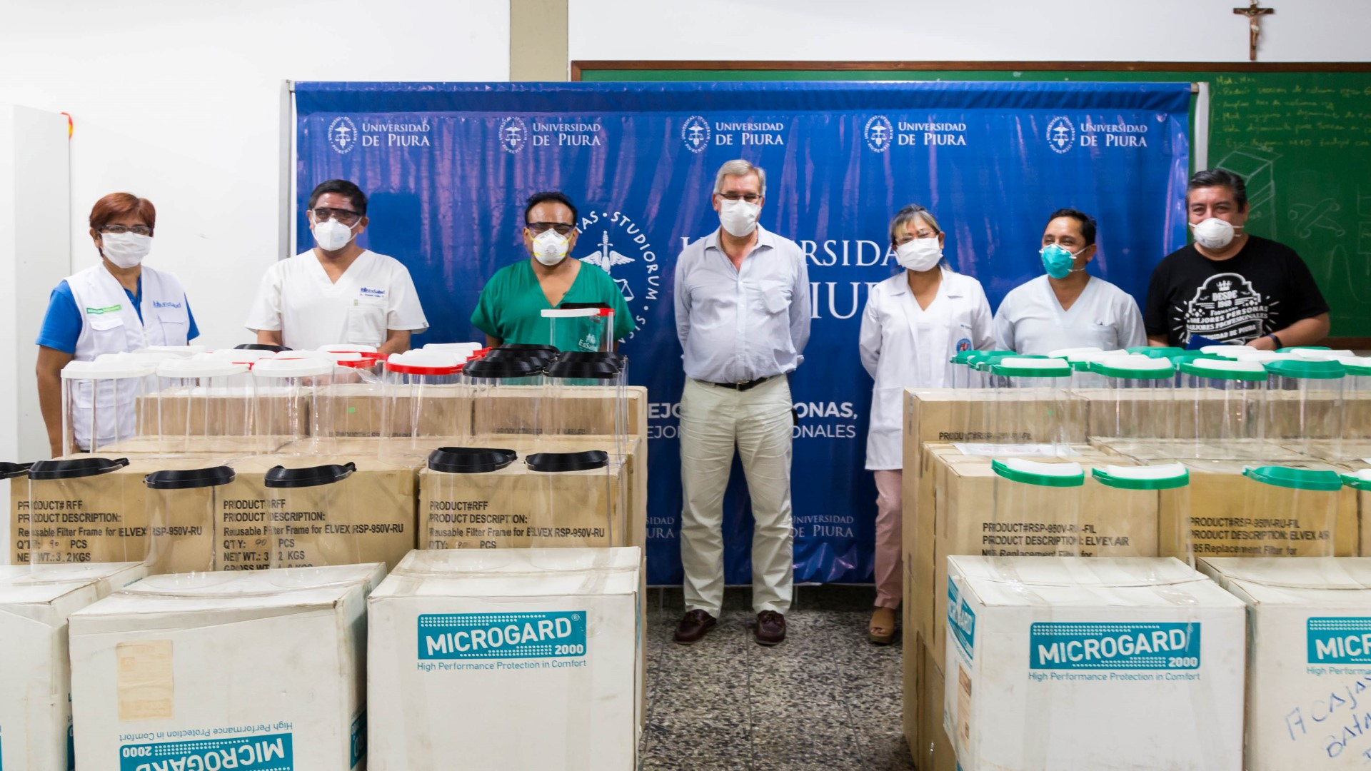 Asimismoentregó a dichos hospitales 1200 mascarillas y 480 overoles protectores para personal médico y paramédico, donados por la empresa Ferreyros a la universidad. Y, donará protectores faciales, mascarillas y overoles a la posta médica de Sechura, el martes 9 de junio.