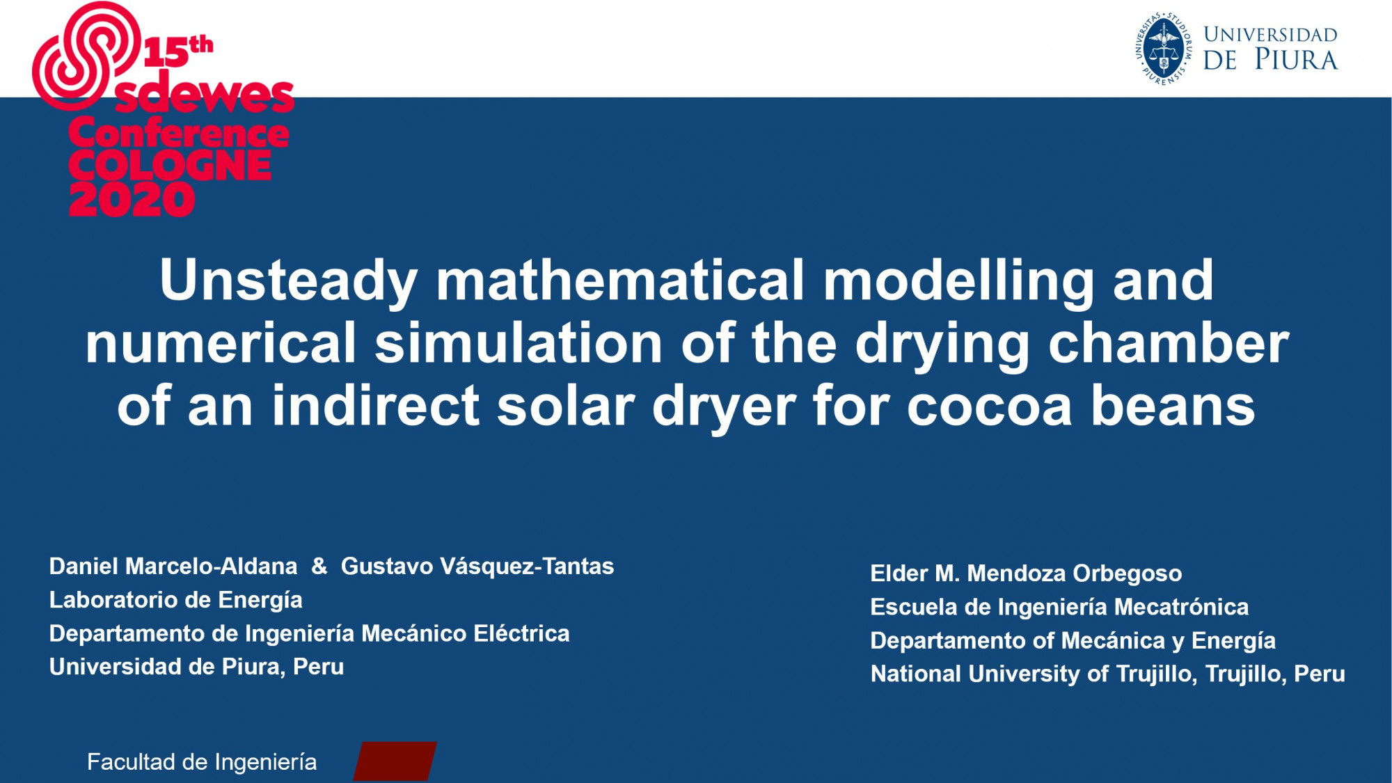 El ingeniero Daniel Marcelo, docente de la Facultad de Ingeniería de la Universidad de Piura, presentó dos artículos científicos sobre aplicaciones de la energía solar térmica de baja temperatura en la conferencia internacional realizada en Colonia (Alemania), en modalidad virtual.