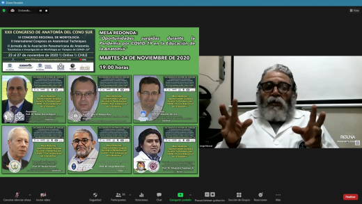 Este año, en el contexto de la coyuntura actual de la pandemia por el COVID-19, el evento se desarrolló de manera virtual. El doctor Jorge Moscol Gonzáles, profesor titular de la Facultad de Medicina Humana y docente de amplia experiencia con más de 50 años de docencia de Anatomía Humana, participó en el segundo día de conferencia, donde compartió sus vivencias sobre la enseñanza de la cátedra de Anatomía Humana en tiempos de confinamiento social.