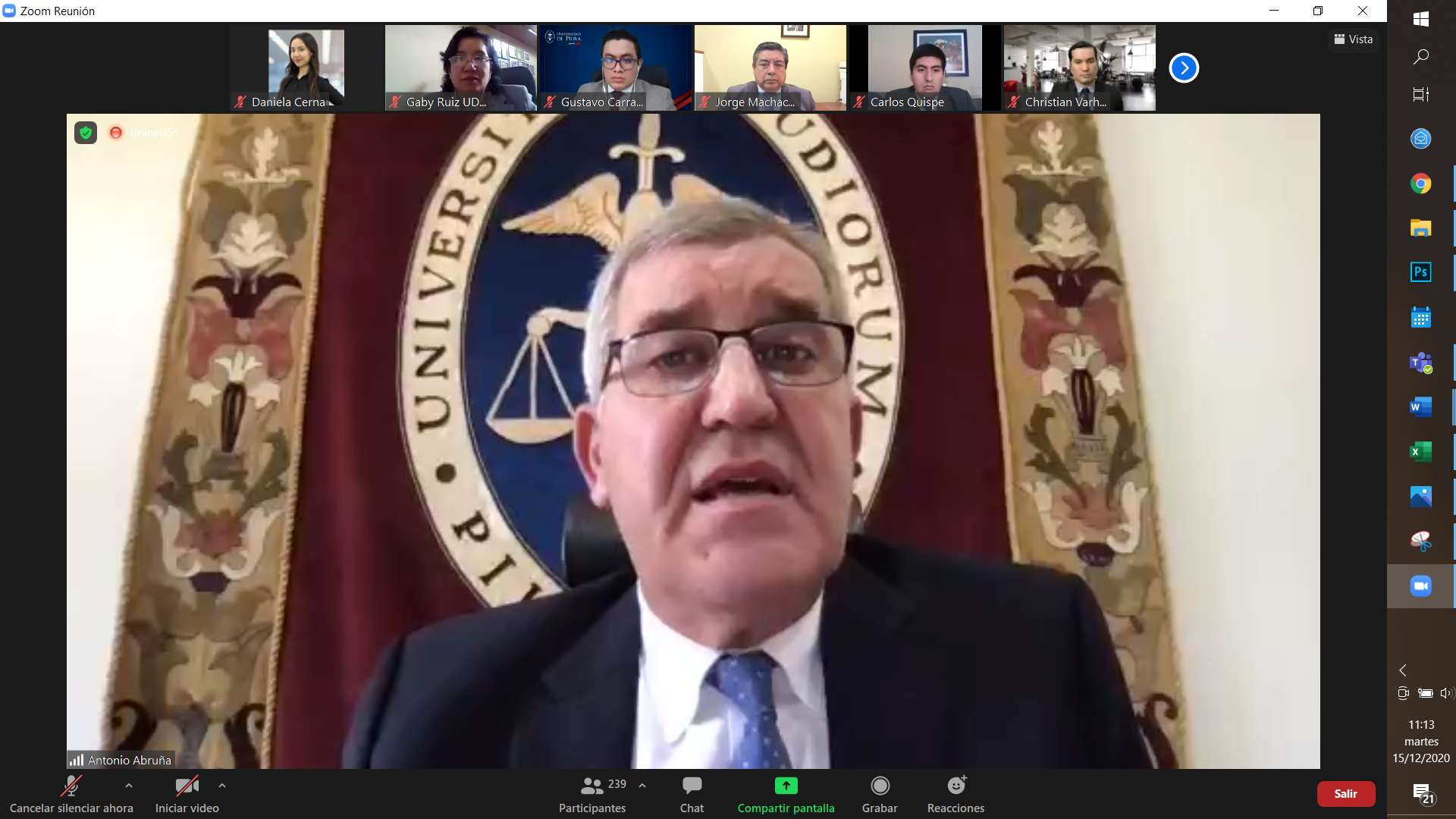 “Es complicado resumir y darle sentido a las cosas que nos han pasado durante los últimos meses. En el plano general es innegable que le impacto de la crisis sanitaria producida por la COVID-19 ha traído tristeza a miles de familias peruanas que han sufrido la pérdida de familiares, muchas veces en situaciones dramáticas”, señaló el decano.