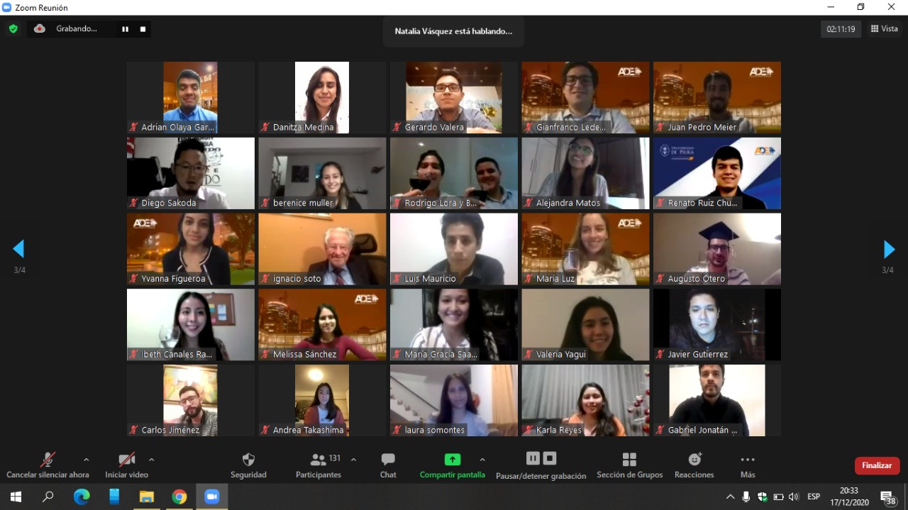 El decano de la Facultad de Ciencias Económicas y Empresariales, doctor Fernando Barranzuela, valoró la actitud de la generación de egresados del 2020: “han sido protagonistas en la primera línea de estos sucesos extraordinarios del año, ya sea cuidando a algún familiar o amigo, ayudando a sus familias en medio de la crisis, o levantando la voz en los recientes eventos políticos. Y en medio de toda esta vorágine, han tenido que sacar adelante su último año de estudios”.