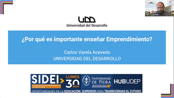 Organizado por Hub UDEP y la Facultad de Ciencias Económicas y Empresariales de la Universidad de Piura, el 30 de noviembre se realizó el seminario internacional “Docencia en emprendimiento e innovación”, que congregó virtualmente a más de 80 docentes universitarios de México, Chile, Ecuador, Colombia, Guatemala y Perú.