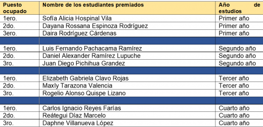 En esta clase inaugural se premió a los estudiantes más sobresalientes del 2020, de primero a cuarto año de la carrera. Los diplomas los entregó la magíster Inés Arnao, colaboradora docente de la facultad, quien resaltó la búsqueda de la excelencia como meta a partir de la cual la universidad elabora sus planes de estudio y define su enseñanza: “la carrera de Medicina es de larga duración y muy competitiva, por ello, obtener un alto rendimiento implica muchas horas de estudio y sacrificar actividades de entretenimiento. Felicitaciones a los premiados por todo el empeño y el esfuerzo dedicado, a pesar de las condiciones actuales de pandemia”, dijo la profesora.