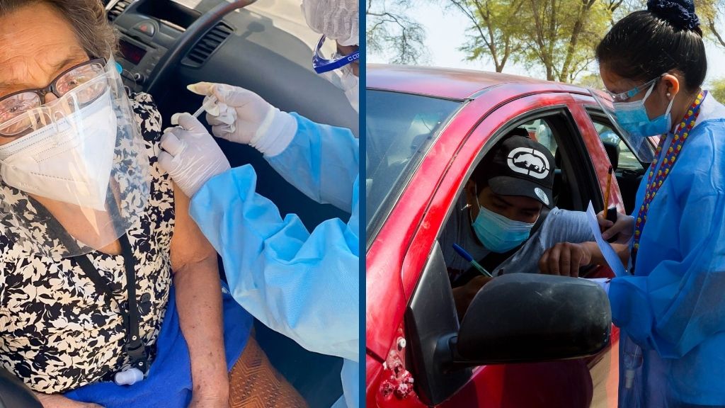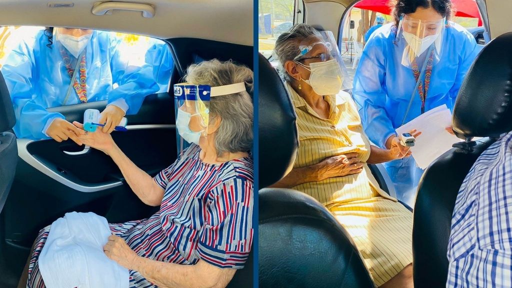 En la UDEP, la vacunación se desarrolló bajo dos modalidades y en dos espacios: peatonal, en el Policlínico Universitario y ‘vacuna car’, en la playa de estacionamiento del edificio de Derecho; en este último caso, los adultos mayores no tuvieron que bajar del vehículo para ser inoculados.