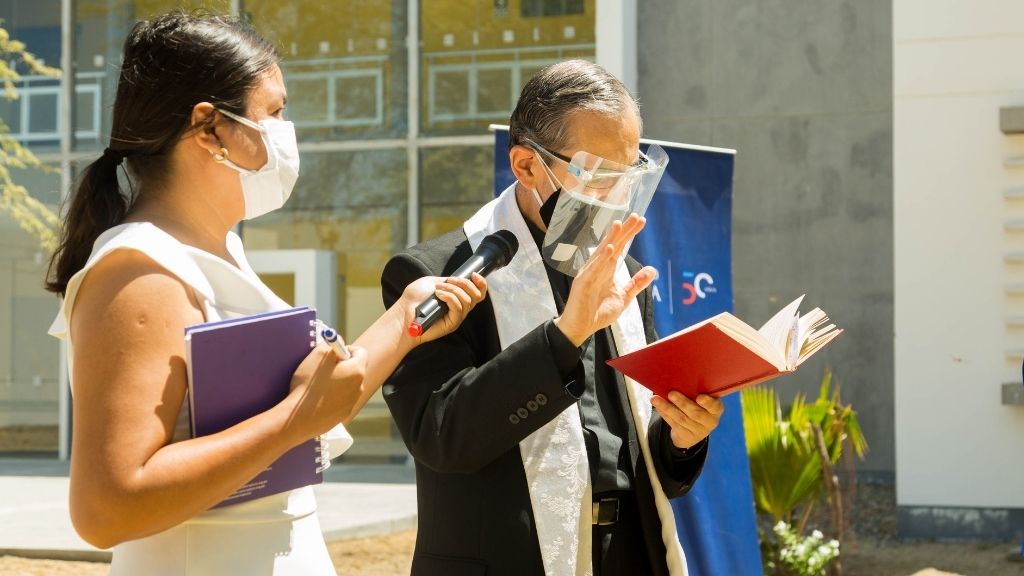 Raul Olivares, gerente administrativo de esta casa de estudios, sostuvo que la universidad, al facilitar el uso de sus equipos e instalaciones, cumple con dos de sus objetivos: servicio a la sociedad y contribución a la solución de los problemas. “En esta oportunidad, estamos poniendo a disposición de las autoridades competentes de Salud nuestra cadena de frío y nuestras instalaciones para poder atender a los adultos mayores”, indicó.