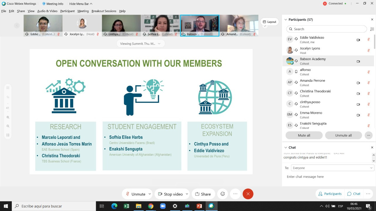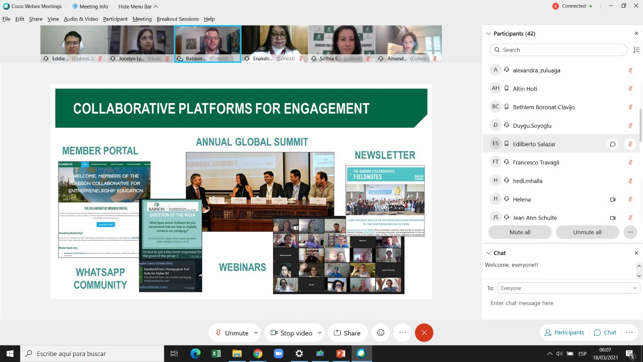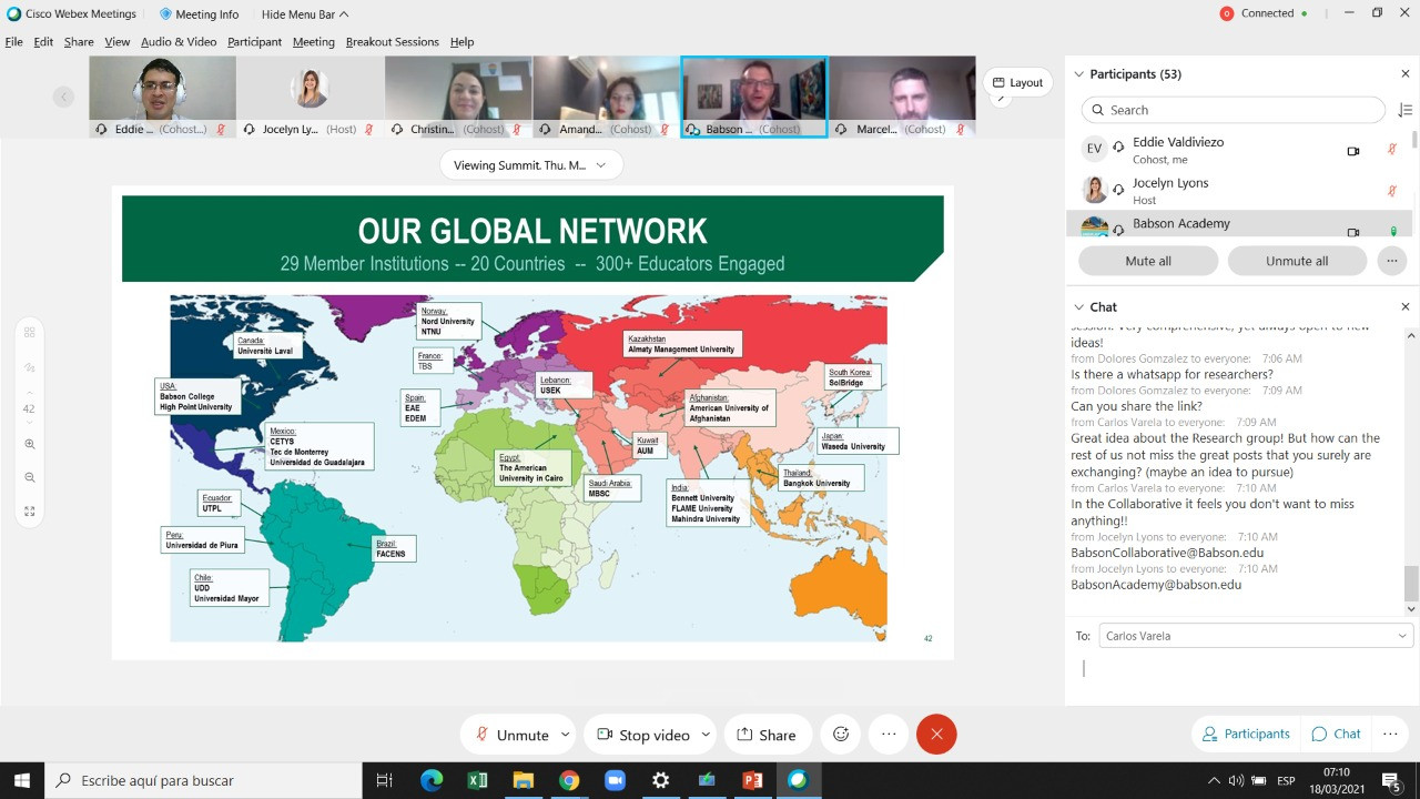 El evento Collaborative Global Summit organizado por la red “The Babson Collaborative”, reunió a especialistas internacionales quienes abordaron sus buenas prácticas de educación en emprendimiento y su adaptación al entorno virtual.