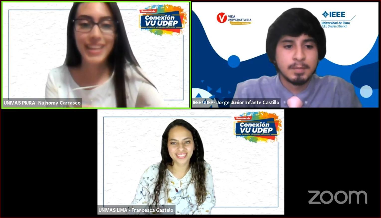 A estas sesiones se sumaron charlas para los ingresantes que les permitieron conocer la forma virtual en que se vive, en la actualidad, la Vida Universitaria en la UDEP, para enriquecer su experiencia universitaria, aprovechando todas las actividades que se organizan.