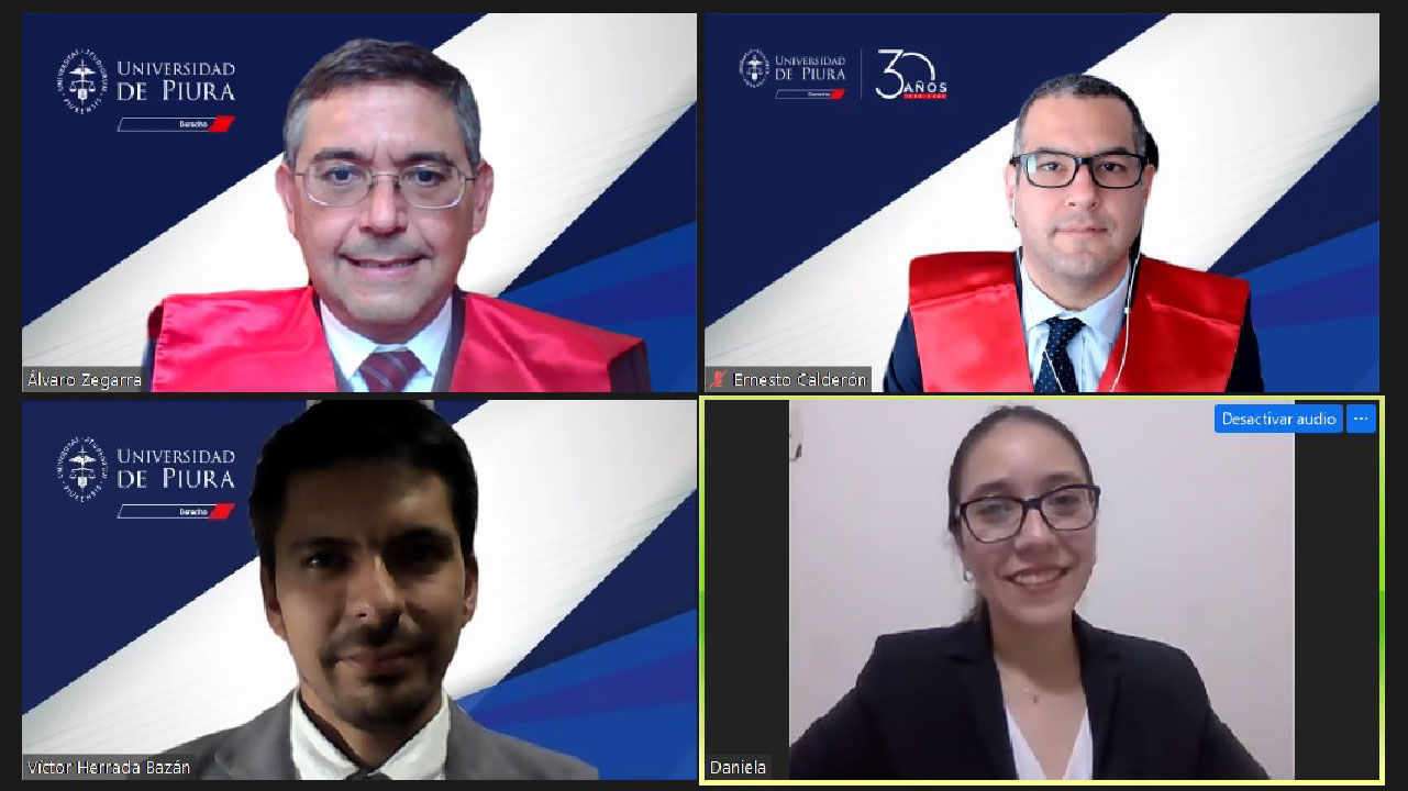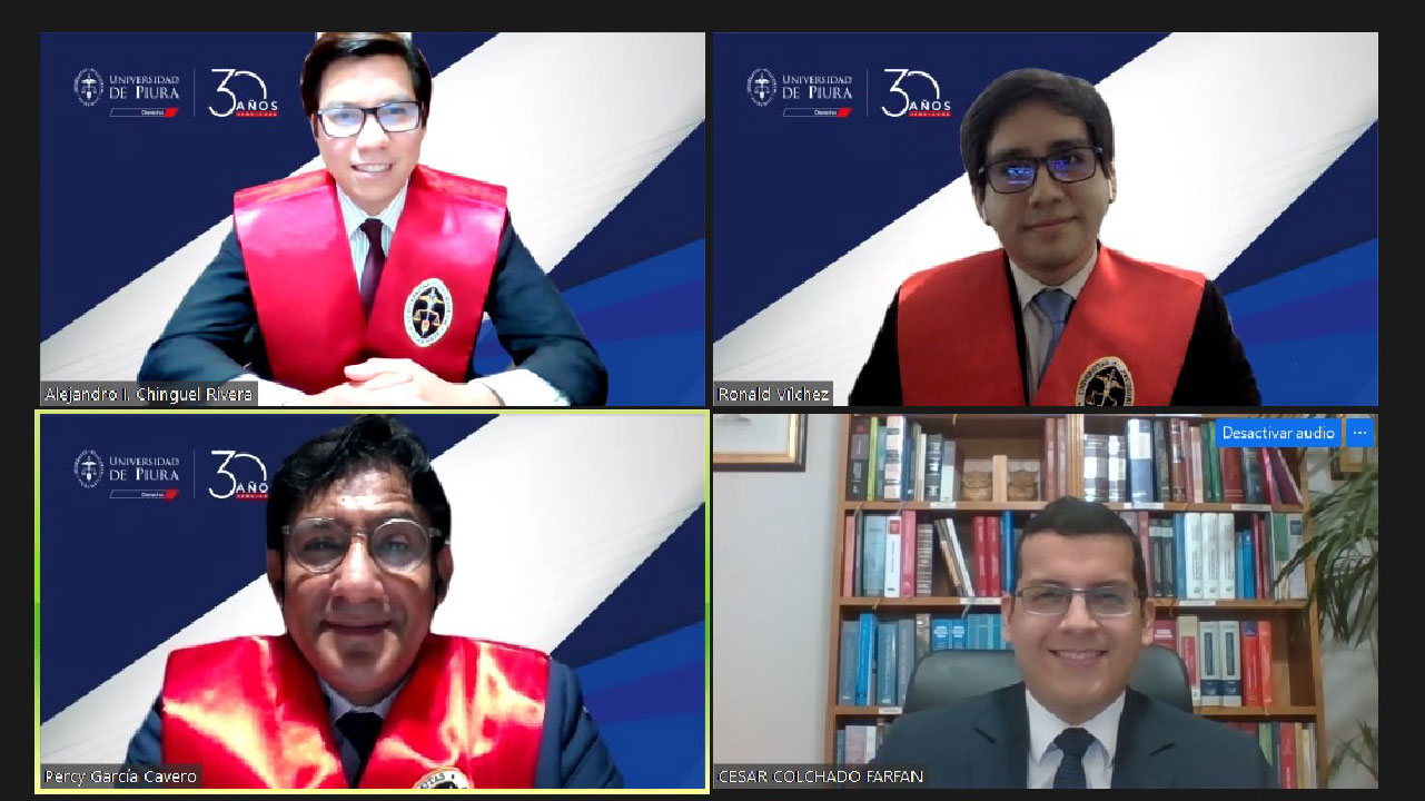 Durante el mes de mayo, cuatro egresados de la Facultad de Derecho sustentaron sus respectivas tesis para obtener el título de abogado, ellos fueron César Enrique Colchado Farfán, Grecia Rogelia Torres Vilcherrez, Daniela Bertha Cabrera Díaz y Julio Andre Panta Trelles.