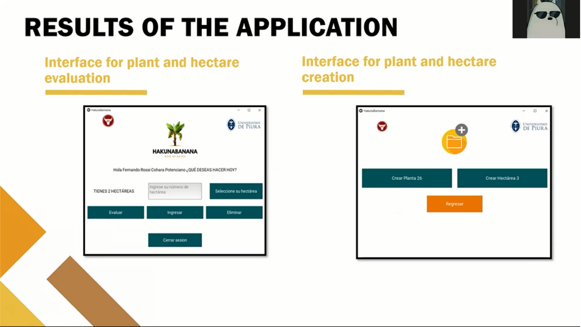 Uno de los proyectos presentados fue Aplicaciones del Machine Learning en el desarrollo de algoritmos para detectar parámetros de control de calidad del mango usando imágenes hiperespectrales, que busca mejorar la selección del mango y evitar su deterioro en el proceso. Este trabajo, elaborado en tres meses, estuvo a cargo Nicolás Kuroki, Jorge Guerra, Amancio Cruz y José Córdova.