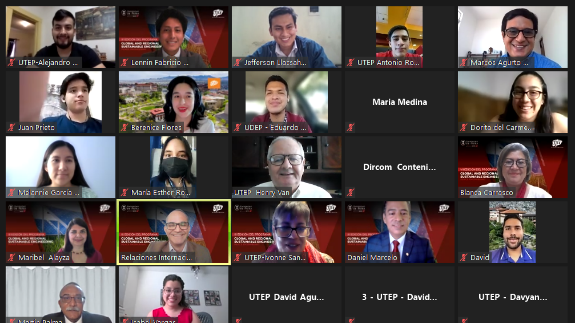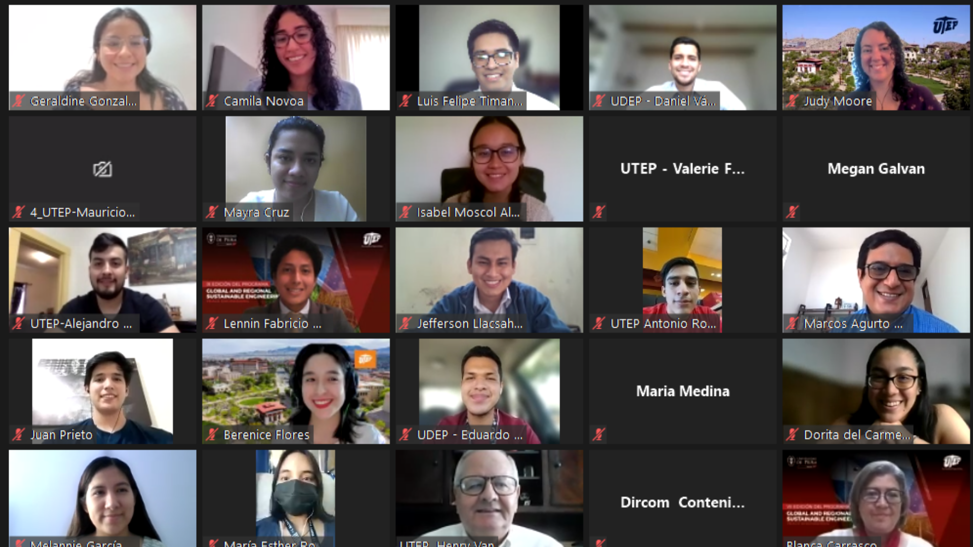 Por Gabriela Hernández. 11 agosto, 2021.Luego de ocho semanas de sesiones prácticas con expertos internacionales, reuniones grupales de trabajo y actividades culturales, 16 estudiantes de la Universidad de Piura y 12 de la Universidad de Texas en el Paso de Estados Unidos se reunieron en la ceremonia de clausura de la IX edición del programa “Global and Regional Sustainable Engineering”, donde compartieron sus aprendizajes y anécdotas de la experiencia.