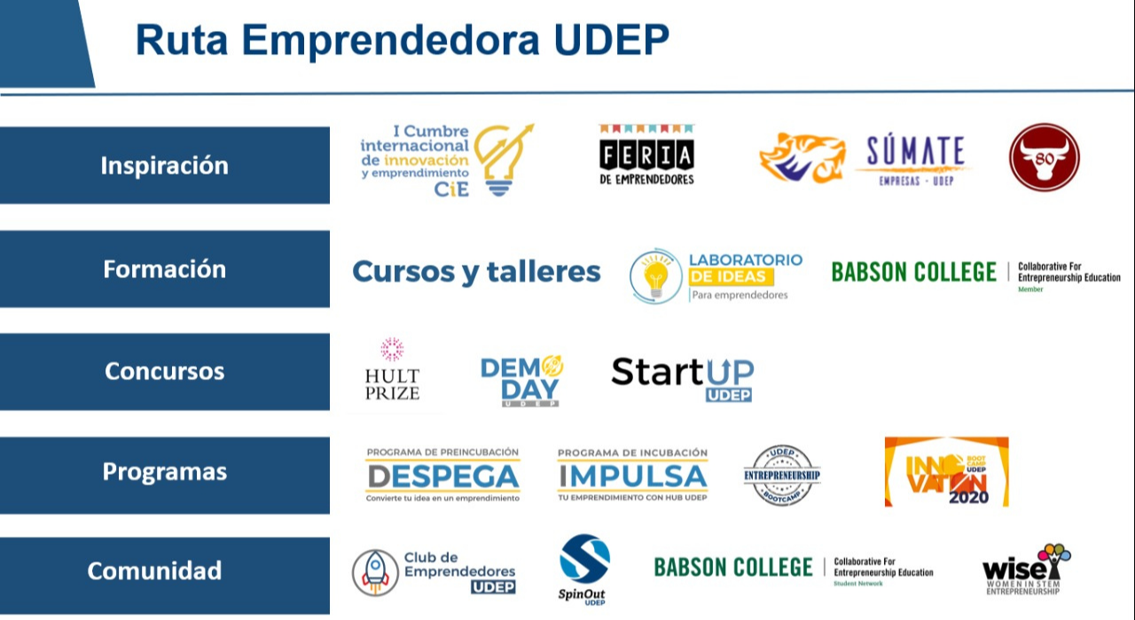 La incubadora de negocios Hub UDEP es el nexo entre los estudiantes y la comunidad. Este centro ayuda a los emprendedores universitarios a incrementar sus oportunidades de crecimiento a través de cursos, talleres, eventos, ferias, concursos y programas; canalizándolas en la Ruta Emprendedora UDEP y les da visibilidad a través del nuevo marketplace del portal Job UDEP del Centro de Desarrollo de Carrera (CDC) de la Universidad de Piura.
