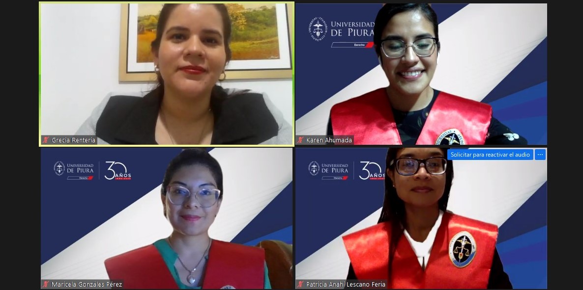 Grecia Virginia Rentería Sanz, Pedro Cesar Torres Vilcherrez, y Marite Vargas Guaylupo, egresados de la Facultad de Derecho sustentaron sus respectivas tesis para obtener el título de abogado.