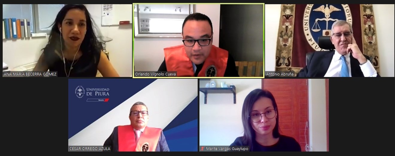 Finalmente, ante el jurado integrado por el doctor Orlando Vignolo Cueva, la doctora Ana María Becerra Gómez y el magíster César Orrego Azula, la bachiller Marite Vargas Guaylupo defendió su tesis titulada “La caducidad en los procedimientos administrativos sancionadores”, obteniendo la calificación de sobresaliente.
