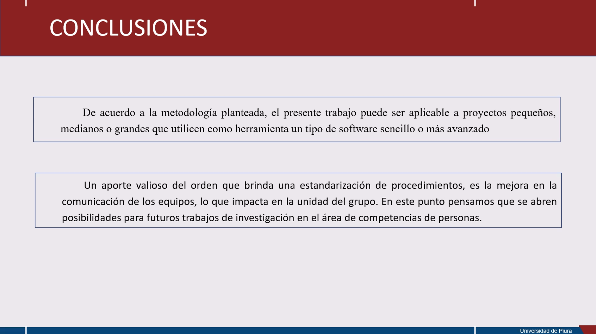 Al final de la ponencia, ambos egresados obtuvieron la calificación de sobresaliente, obteniendo su título de magíster en la Maestría en Dirección de Proyectos.