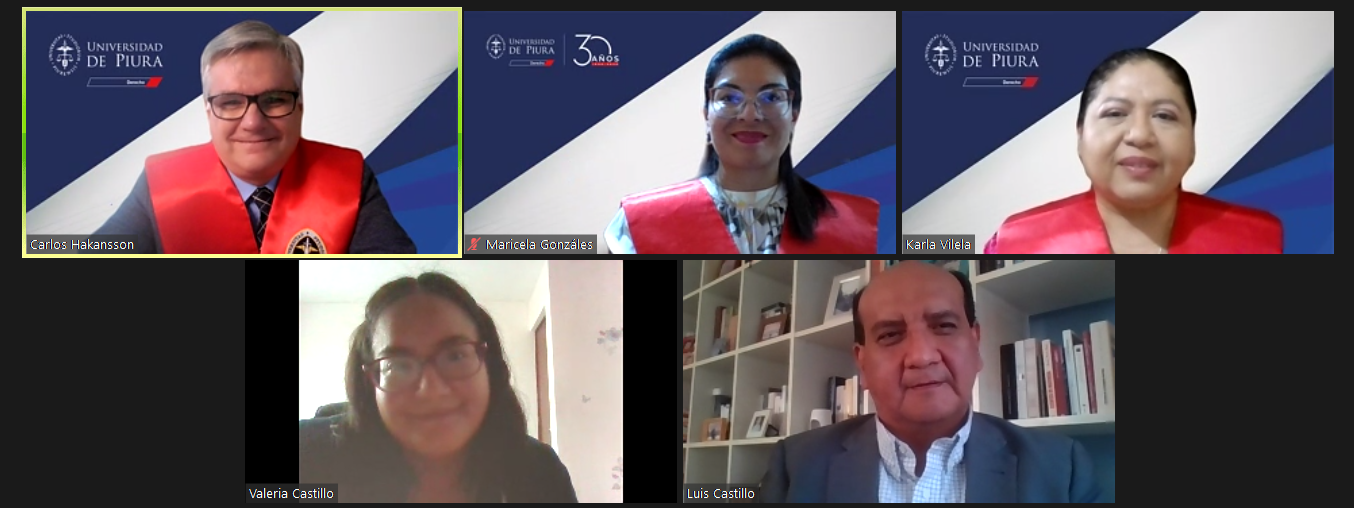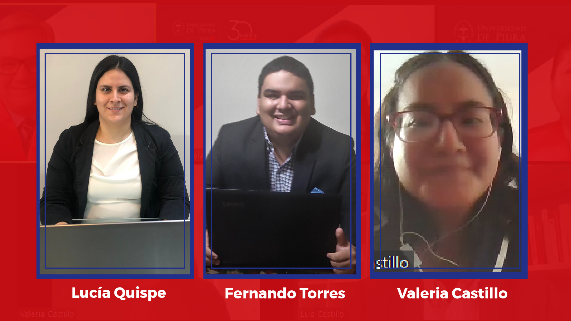 Los egresados de la Facultad de Derecho, Valeria Milagros Castillo Horna, Ana Lucia Quispe Eléspuru y Fernando Alfredo Torres García sustentaron sus respectivas tesis para obtener el título de abogado.