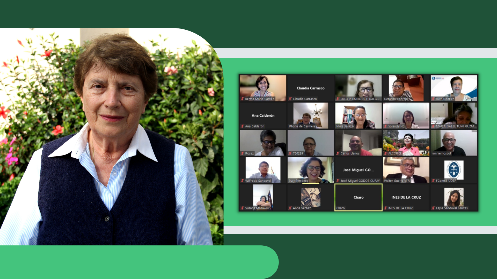 El 9 de diciembre, la doctora Carmela Aspíllaga, exdecana de la Facultad de Comunicación de la Universidad de Piura, maestra de generaciones de comunicadores, dirigió el coloquio virtual “Desafíos de la comunicación: saber informar, saber escuchar”, con un nutrido grupo de egresados de la facultad, procedentes de distintas partes del país y del extranjero.