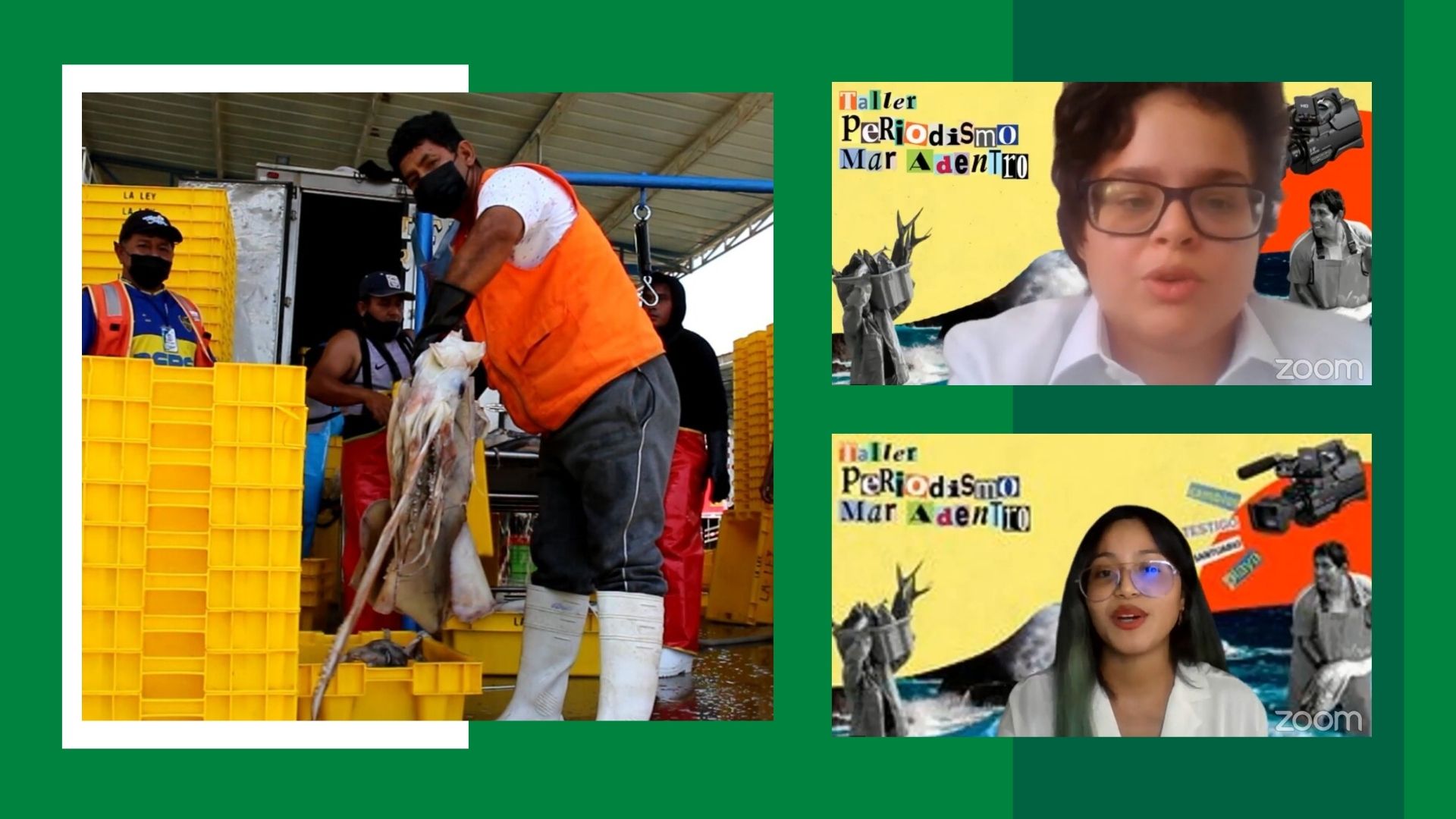 Por Fernanda Vegas Sernaqué. 09 marzo, 2022.Tatiana Ezerskii y Mariana Rueda, estudiantes del programa de Periodismo de la Facultad de Comunicación de la Universidad de Piura, junto a Caroline Yarlequé, alumna de Derecho en la Universidad César Vallejo, presentaron el reportaje “Tinta dinero y sangre”, una investigación sobre la problemática de la pesca de pota como la segunda pesquería más importante en el Perú.