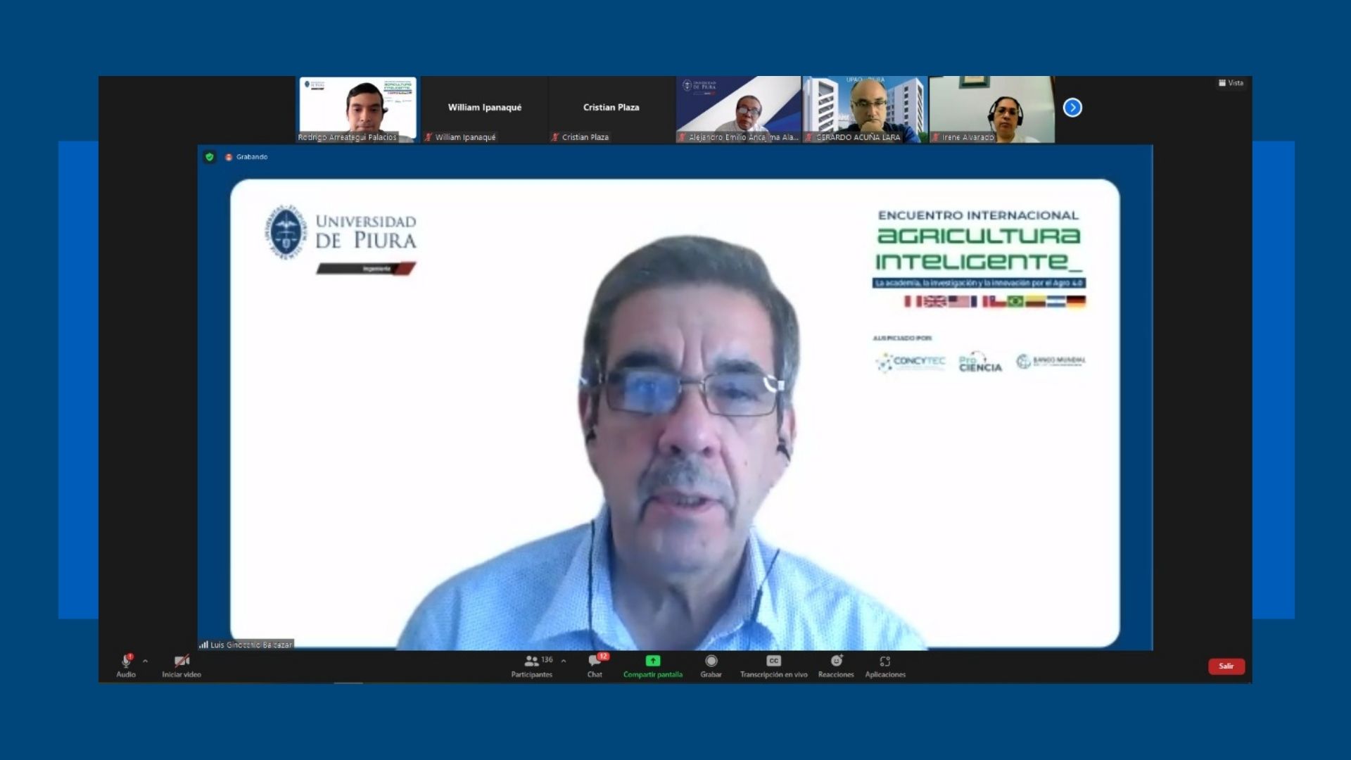 Por Fernanda Vegas Sernaqué. 12 abril, 2022.La primera jornada del Encuentro Internacional sobre Agricultura Inteligente, evento organizado por el programa de Doctorado en Automatización, Control y Optimización de Procesos de la Facultad de Ingeniería de la Universidad de Piura, se llevó a cabo el 6 de abril. Reunió a especialistas del Perú, Colombia, Brasil e Inglaterra y contó con el auspicio del el Concytec, Prociencia y el Banco Mundial. El propósito del encuentro fue promover la aplicación de metodologías y tecnologías en el agro.