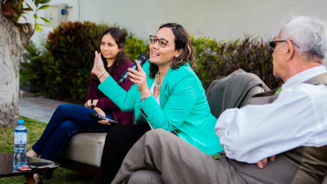 En el conversatorio participaron también los egresados Belén Ross Morrey y Carlos Hilgert. Ella comentó el impacto positivo que ha tenido la Psicología en su entorno familiar y de amigos, ya que ayudó a despertar el interés de sus seres queridos por la salud mental.