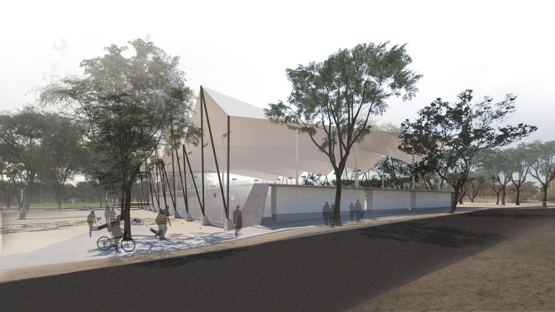 El arquitecto David Resano explicó que la consulta de la universidad para implementar un espacio deportivo a la sombra suponía el reto de techar un área de grandes dimensiones optimizando los recursos disponibles. Para ello, se diseñó una tensoestructura cuya geometría no solo requiriese la menor cantidad de elementos posibles, sino que también armonizara con el paisaje del bosque seco de algarrobos del campus.