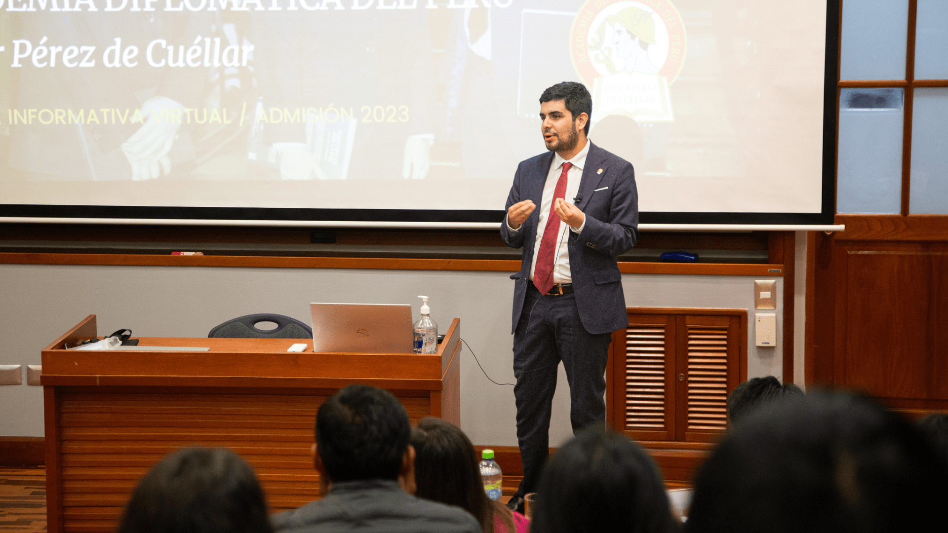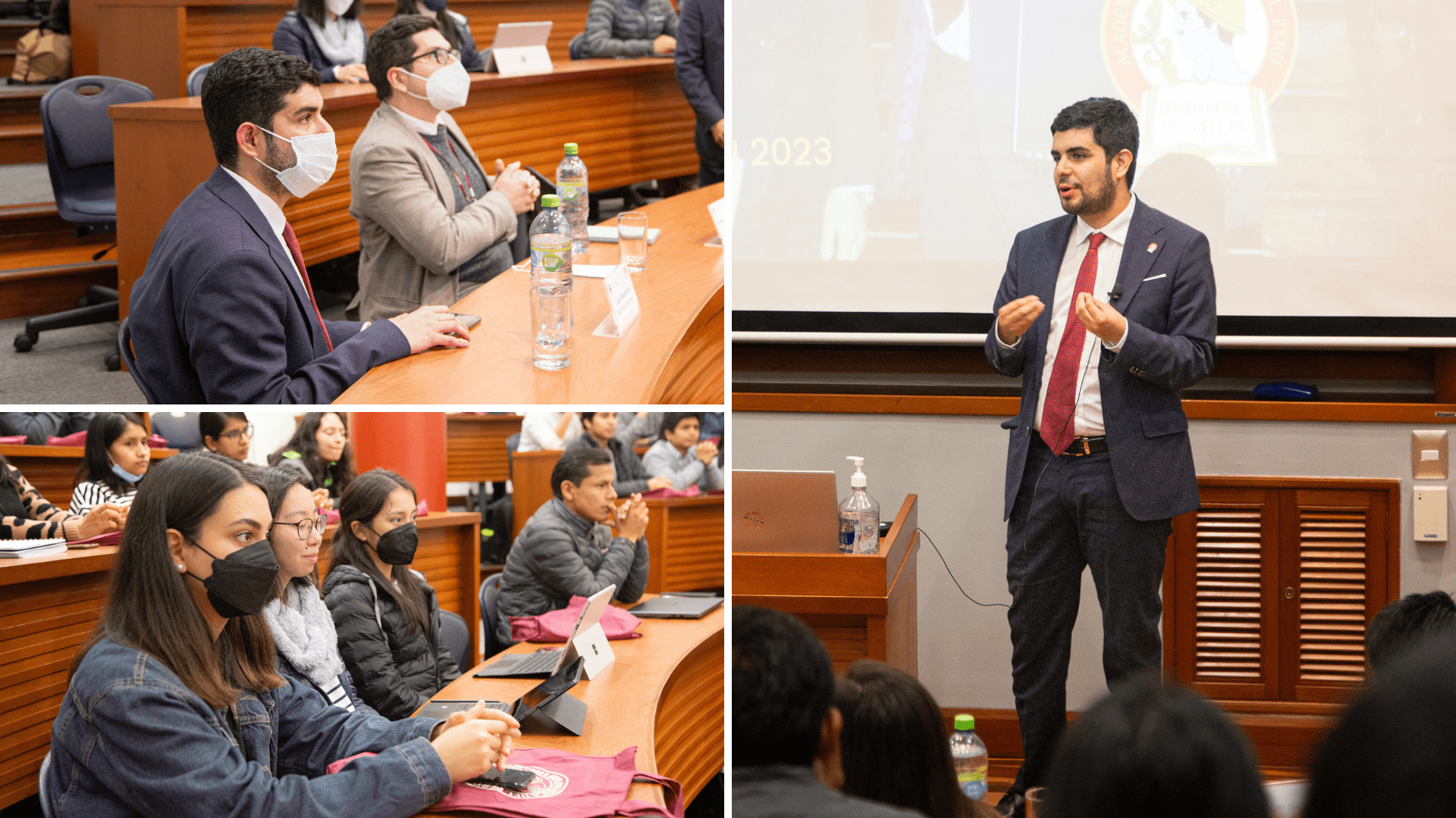 Los egresados, Bertarelli y Bulnes, estuvieron en Campus Lima de la Universidad de Piura, junto con la delegación de la Academia diplomática del Perú (ADP), encabezada por su director adjunto, el ministro Raúl Hidalgo. Ellos impartieron una charla acerca de la ADP y las múltiples opciones que ofrece la carrera diplomática para el desarrollo personal y profesional.