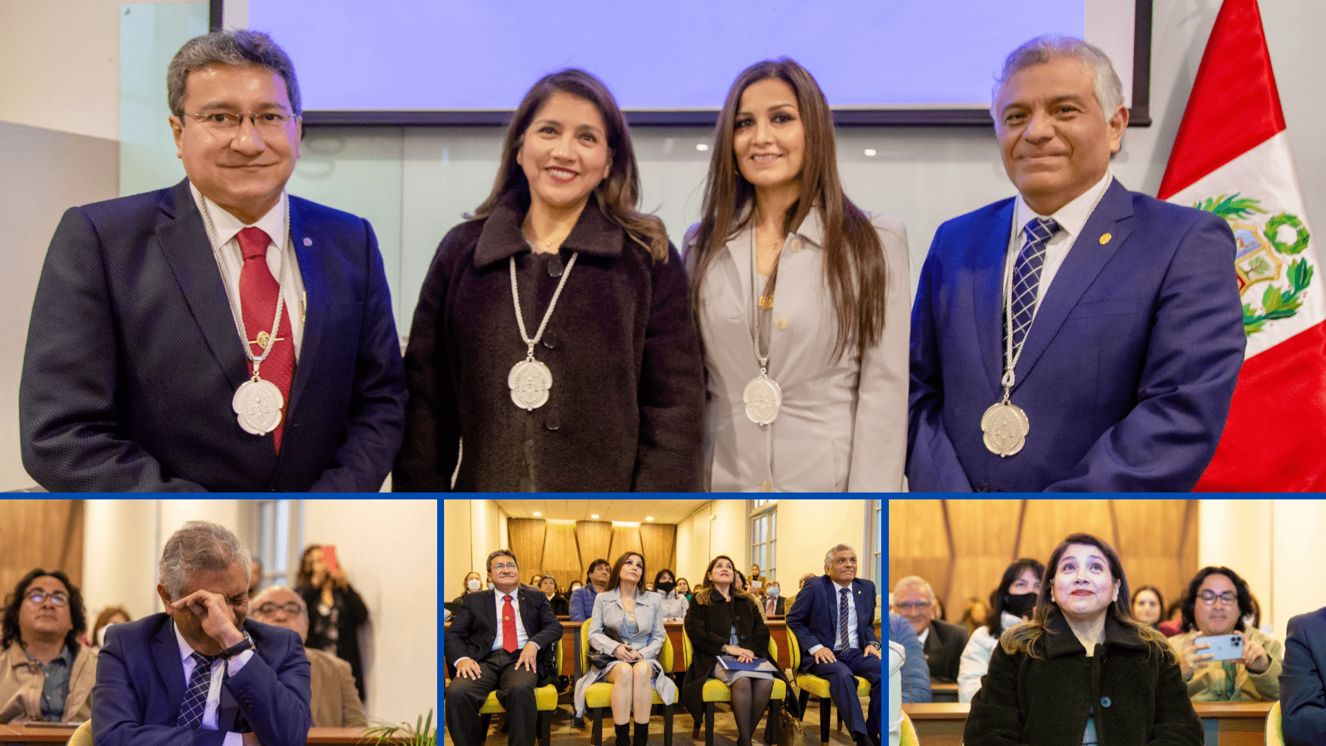 Los distinguidos fueron las profesoras de la Facultad de Humanidades, Carola Tueros Salazar y Eliana Gonzales Cruz; el profesor de la Facultad de Ciencias Económicas y Empresariales, Julio Hernández Pajares, y el secretario académico del programa académico de Ingeniería Industrial y de Sistemas de Campus Lima, Luis Flores Caucha.