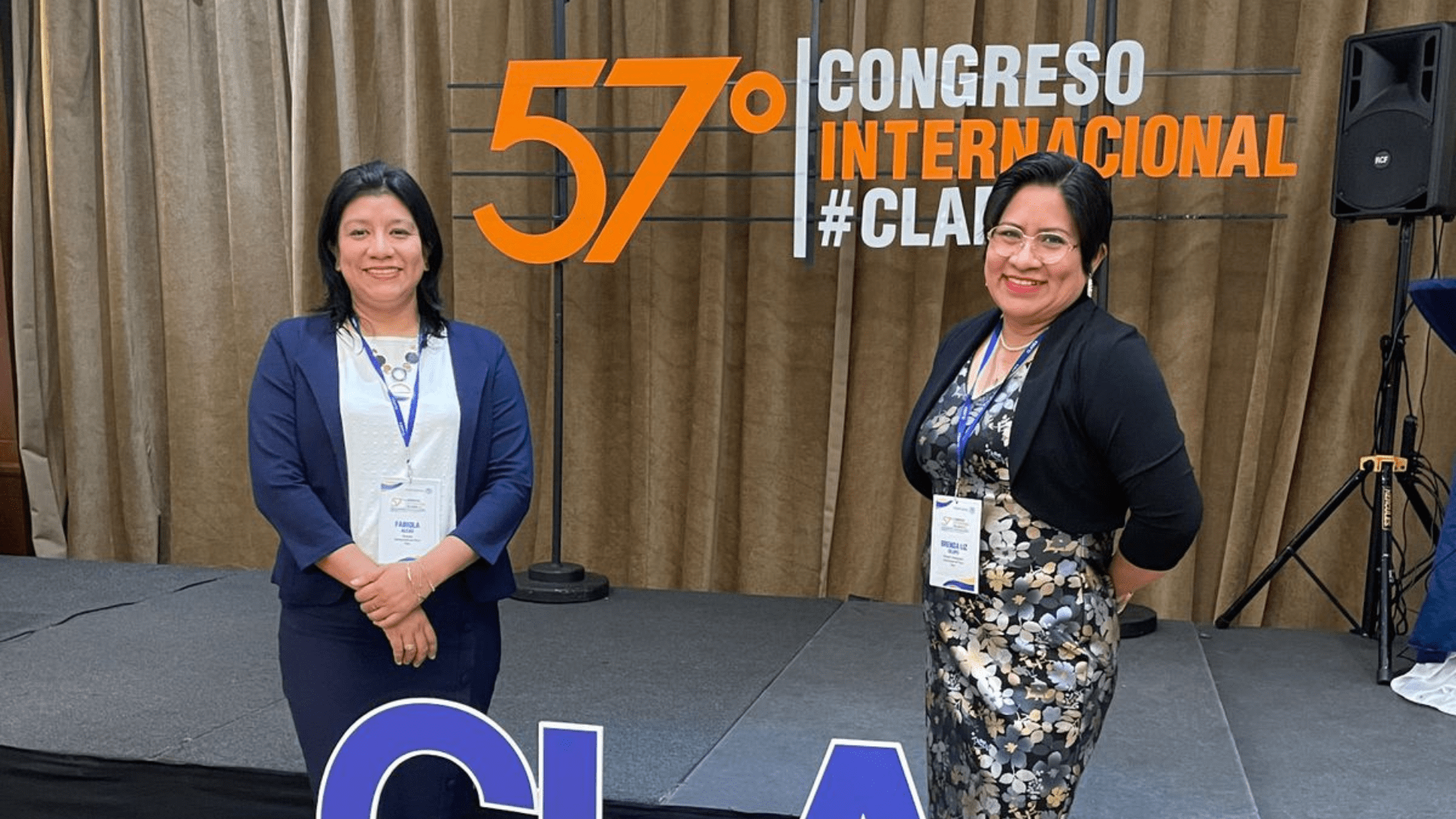 Brenda Silupú, Fabiola Alcas (modo presencial), Elsa Alama y Sofía Vásquez (virtual) llevaron sus investigaciones al Consejo Latinoamericano de Escuelas de Administración (Cladea), realizado en Guayaquil.
