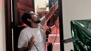 Además, el equipo transformó, a través de un modelo 3D, un salón de la Facultad de Ciencias de la Educación en dos habitaciones para los personajes del cortometraje con las dimensiones reales. Esta implementación fue posible con el uso de la página web Home By Me, una herramienta que permite crear planos en 2D y 3D.