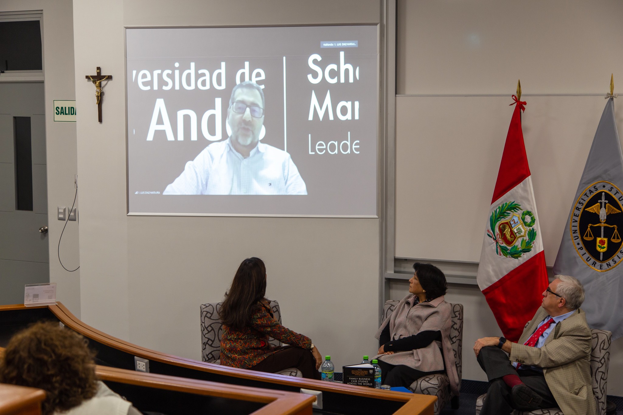 Desde Colombia, a través de una videoconferencia, el doctor Díaz-Matarija se refirió al objetivo de la publicación. Indicó que se buscó crear un producto de investigación no tradicional, “que no solo destaque los casos de éxito, sino que sirva como medio de aprendizaje para que las empresas familiares sepan cómo actuar en momentos de crisis”.