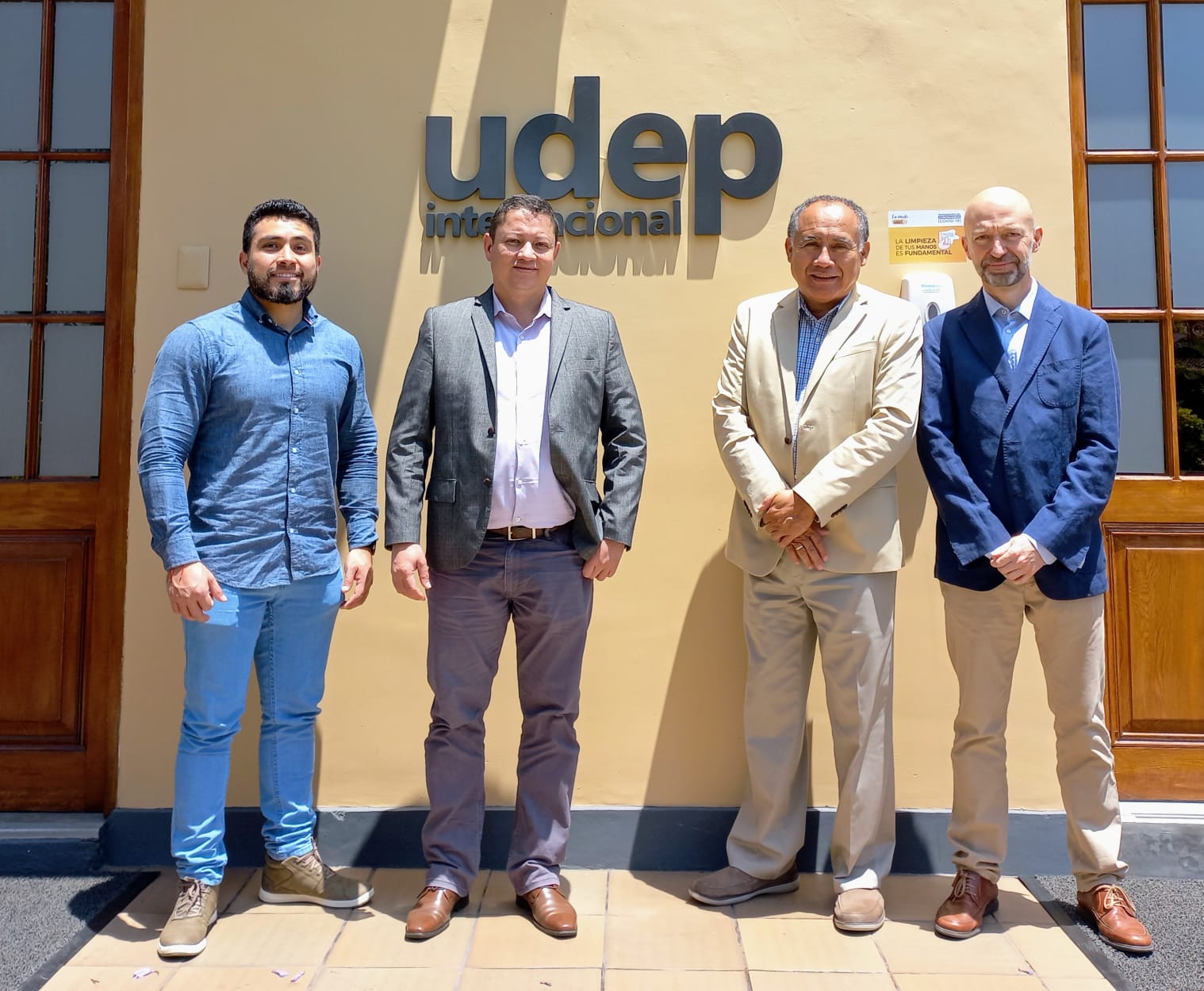 Por Dirección de Comunicación. 07 febrero, 2023.En el marco del proyecto “Raising knowledge and developing technology for the design and deployment of high-performance power transformers immersed in biodegradable fluids – Biotrafo”, financiado por el Programa Horizonte 2020 de la Unión Europea, los ingenieros Alfredo Ortiz y Diego García, especialistas en Ingeniería Eléctrica y Energética, estuvieron en los campus de Piura y Lima de la UDEP, donde acompañados por los ingenieros Justo Oquelis y Marcoantonio Alamo, donde conversaron sobre los proyectos desarrollados dentro del área de Ingeniería Mecánico Eléctrica de esta casa de estudios.