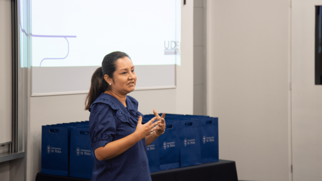 Durante la ceremonia, la jefa de la oficina de Alumni de Campus Lima, Marisol Farfán, invitó a los egresados a mantener sus lazos con la familia de la UDEP, les presentó las múltiples oportunidades que ofrece la oficina a los egresados; y, les entregó unos presentes con merchandising de la universidad.