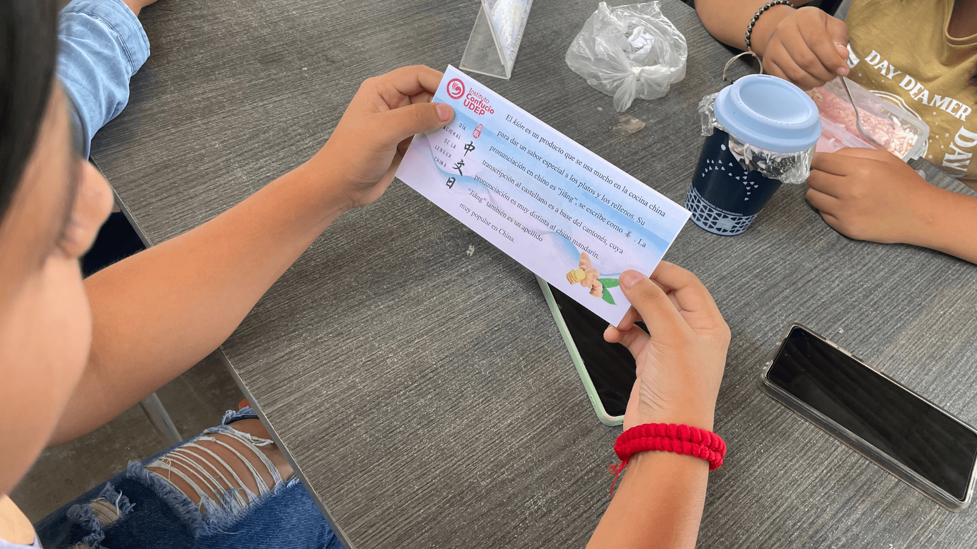 En la segunda actividad se colocaron, en las cafeterías de la universidad, pequeños carteles informativos de “Sabías qué” con los que la comunidad universitaria pudo conocer el vocabulario chino. Por ejemplo, se enseñaron los nombres de los platos en los chifas del Perú, transcritos según la pronunciación en chino cantonés, como chaufa, sillao, kión, entre otros.