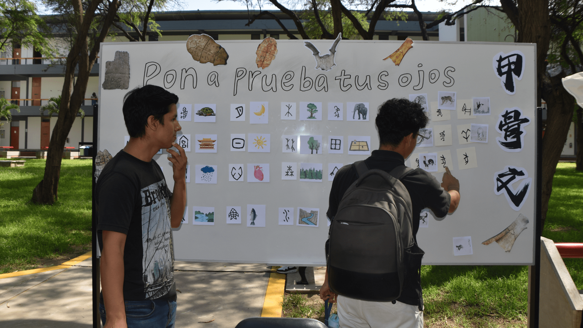 La primera actividad fue la “Exposición de caracteres chinos”, que presenta estos caracteres antiguos y modernos. Se inauguró gracias al apoyo de la Embajada de China en Perú, el Museo de Caracteres Chinos y la representación peruana de la revista China Today. En esta exposición, ubicada en el primer piso del Edificio Principal de Campus Piura, se exhiben 54 imágenes, que presentan el origen, el desarrollo y la difusión de los caracteres chinos, mostrando el encanto mágico del arte de escribir caracteres y la esencia de la cultura de los mismos.