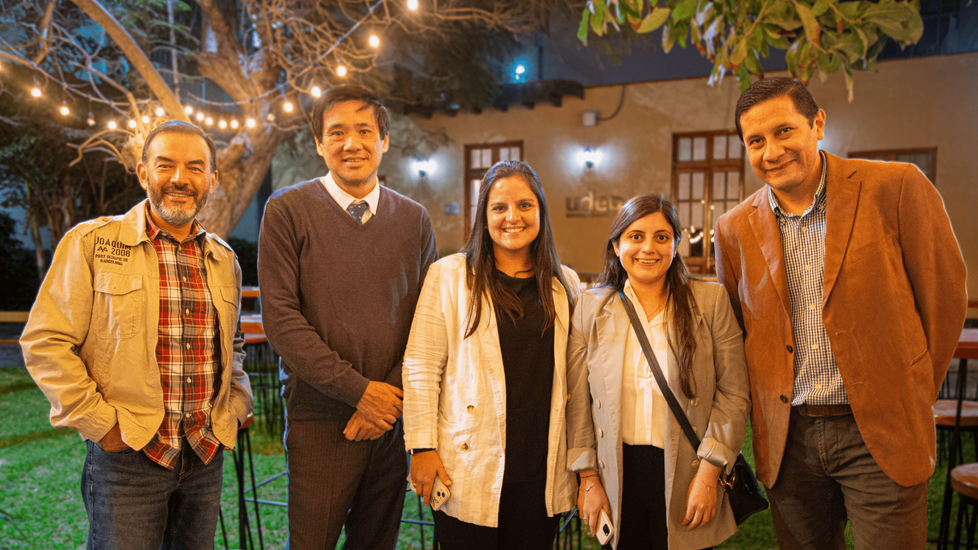 Los profesores Guillermo Cangahuala, Nancy del Águila, César Cáceres, Fabiola Falconí, Fernando Gallardo, Enrique Li, Berenice Ramírez, Karim Rouillon, Gino Vivanco y César Calvo quienes fueron parte fundamental de la formación académica de estos profesionales, se unieron para compartir momentos significativos y conversar sobre los logros de sus exalumnos.