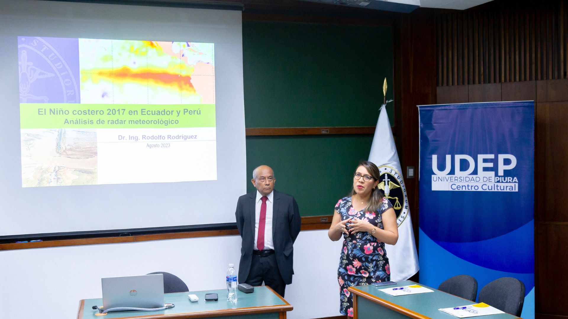 Por Lucy Vicente Chamba. 06 septiembre, 2023.A través de la conferencia “El Niño Costero 2017 en Ecuador y Perú: un análisis de radar meteorológico”, el doctor Rodolfo Rodríguez Arisméndiz, profesor de la Facultad de Ingeniería de la Universidad de Piura y ganador del Fondo Scopus 2022, explicó a la comunidad universitaria las investigaciones que la UDEP viene realizando en torno al Fenómeno El Niño (FEN), a través de la Estación Científica Ramón Mugica, ubicada en el campus de Piura.
