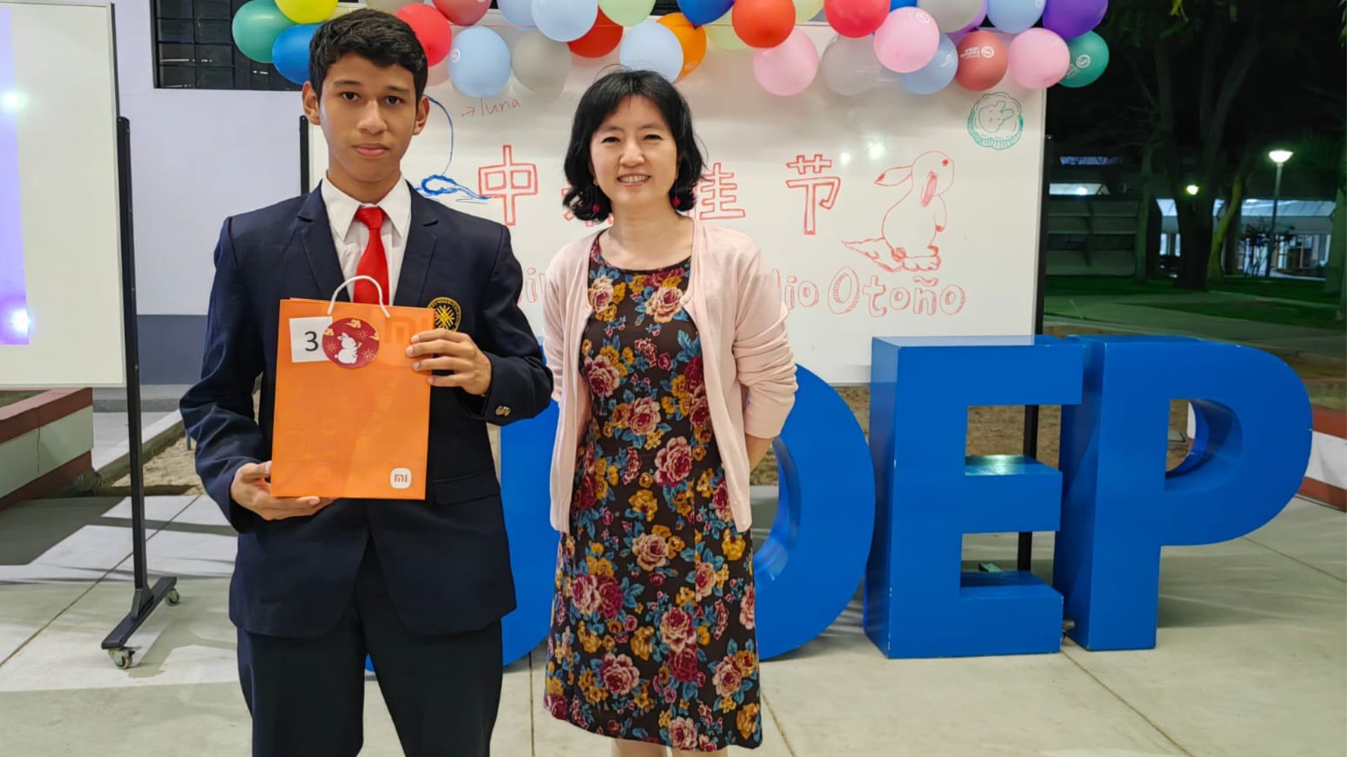 La jornada incluyó sorteos entre el público. Los invitados también degustaron caramelos chinos y el pastel de luna, típico postre de esta fiesta. Asimismo, se premió a los ganadores del Concurso de Poesía China, en el cual los alumnos declamaron poemas sobre China y el Festival de Medio Otoño. El primer puesto lo obtuvieron Salvador Lavalle (牛青心) y Valeria Rojas (任时寒), con el poema “Cielo”; y el segundo lugar fue para Luis Chero (陆易达), quien declamó “La Gran Marcha”.