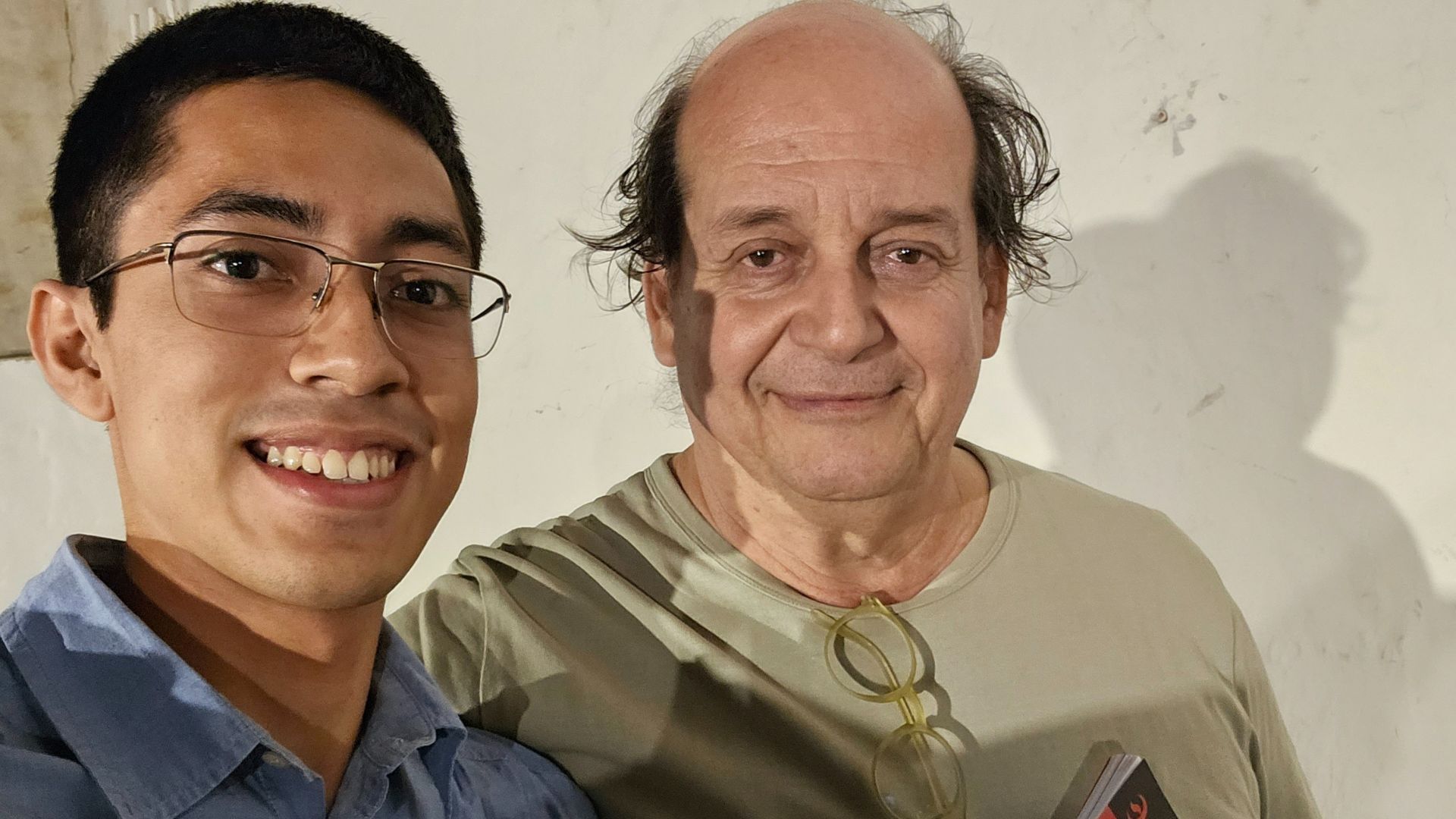 - El fotógrafo Miguel Larrea y el alumno Samuel Gamio.