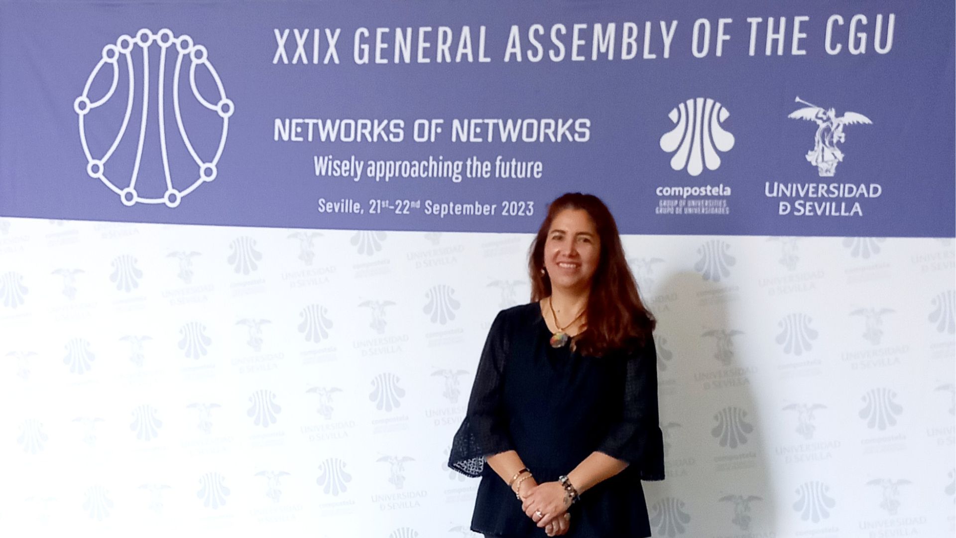 Por Elena Belletich Ruiz. 11 octubre, 2023.En la reciente asamblea, realizada en la Universidad de Sevilla (España), los representantes de más de 60 instituciones miembros de Europa y América reconocieron la labor que desarrolla el Grupo Compostela de Universidades (GCU); se realizó la premiación del concurso de pitches de investigación; y se eligió a la presidenta (por primera vez una mujer) Carla Martins de la Universidade de Minho (Portugal). Ella liderará el grupo hasta el 2027.