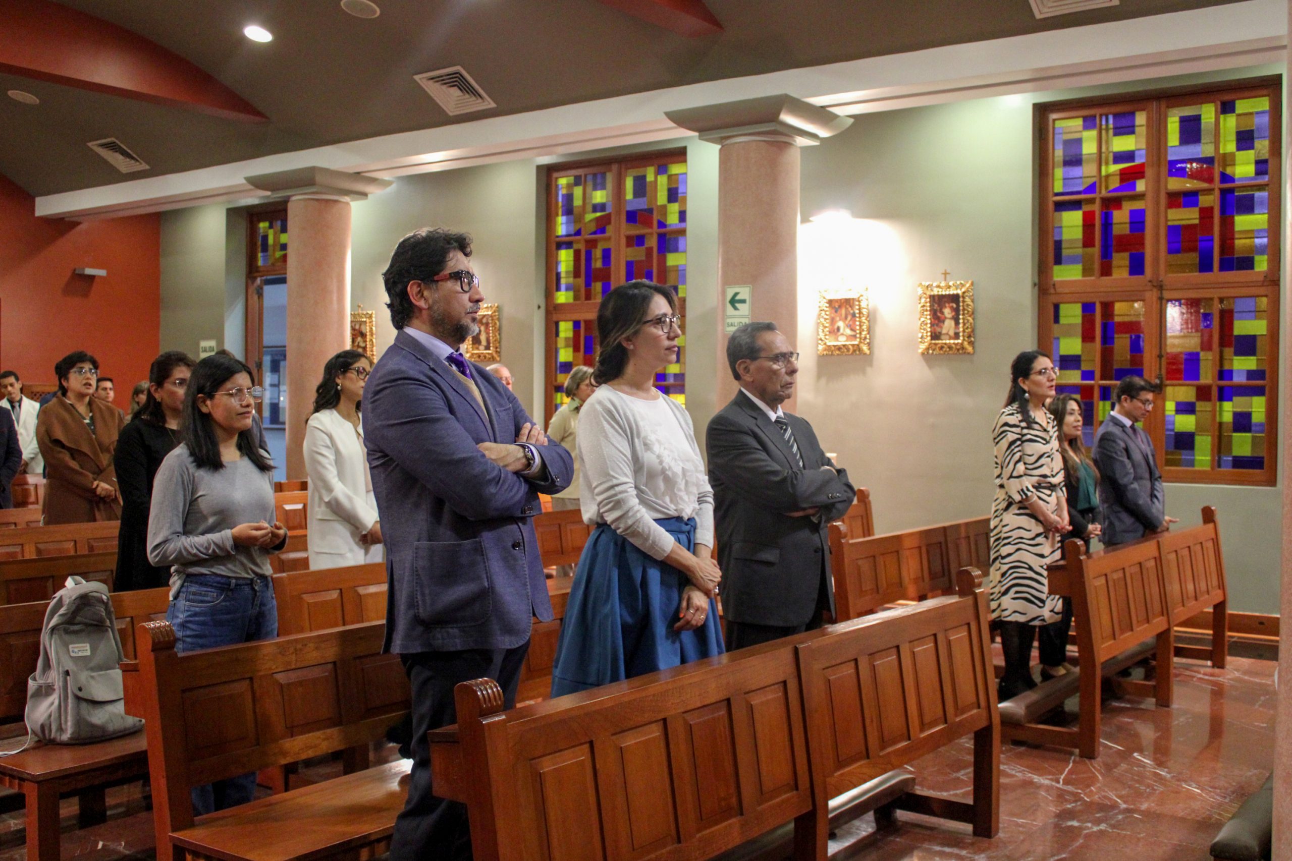 La jornada inició con la celebración  de la misa en la Capilla de Campus Lima, por el padre Juan Armas, capellán de la facultad. Personal administrativo y docente resaltaron la importancia de la unión y la celebración.