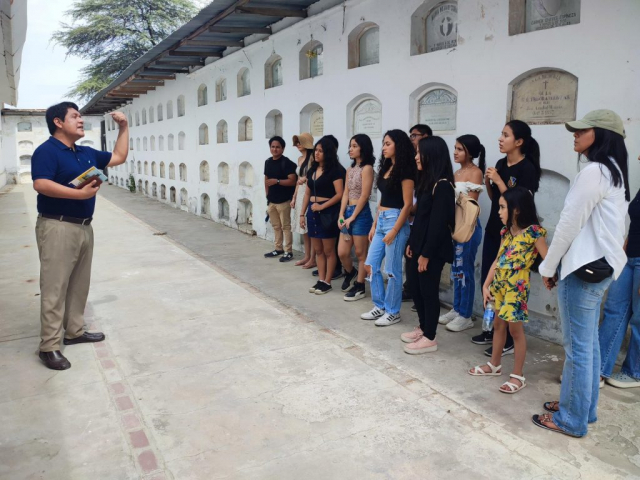 Los participantes, escolares y jóvenes de Piura exploraron y apreciaron el espacio patrimonial, descubrieron tumbas y mausoleos que albergan los restos de personajes históricos de la región.