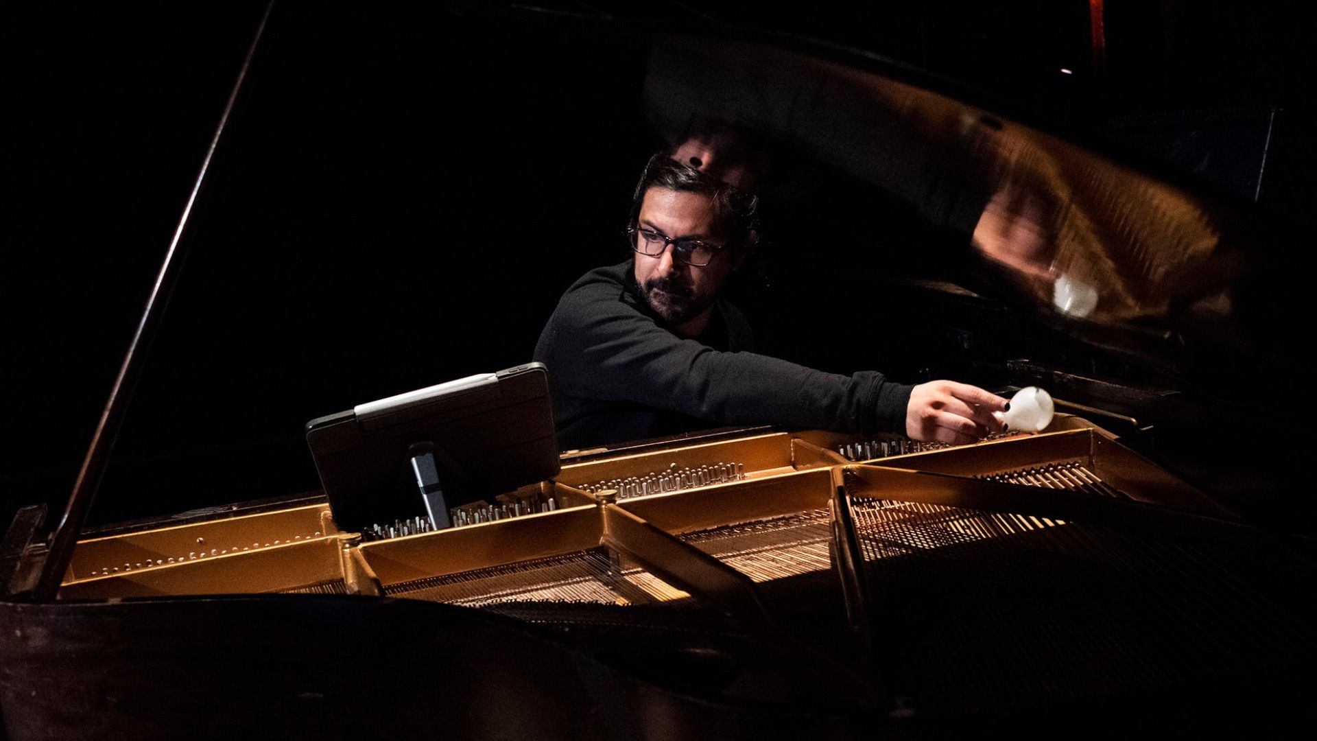 En sus interpretaciones de piano, el concertista incluye obras de Lachenmann, pioneras en la búsqueda de nuevas sonoridades en el piano, en búsquedas liminares de las sonoridades perdidas, y en los gestos usados para crear esos sonidos. Asimismo, la obra de Monahan, que, partiendo de sonoridades diminutas, logra crear un complejo armónico que aparece y desaparece sucesivamente del campo sonoro.