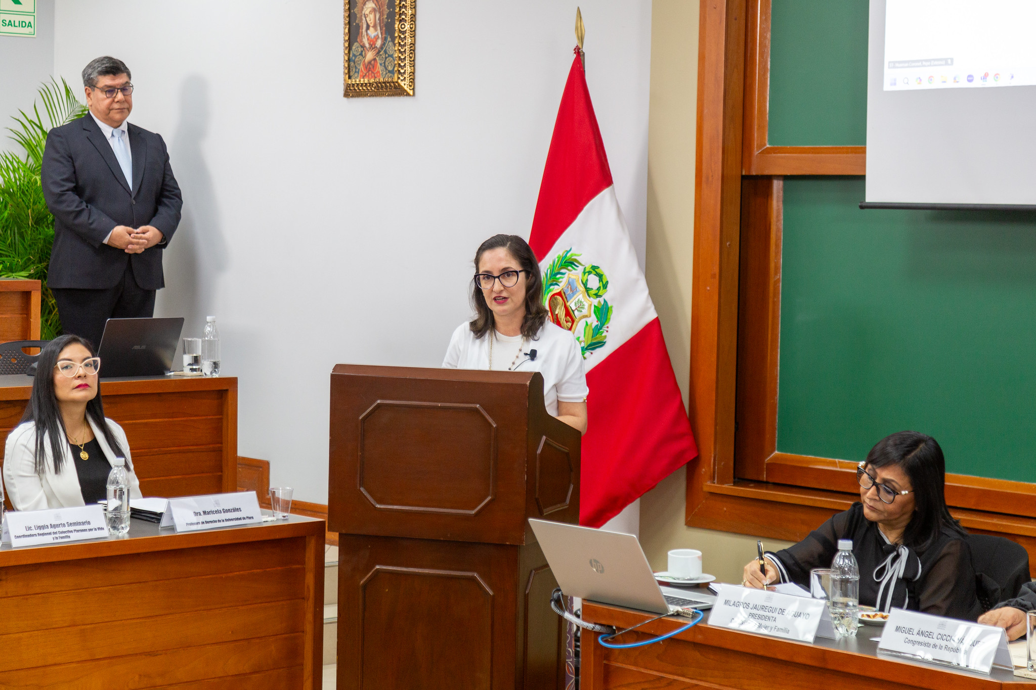 La parlamentaria Jáuregui, presidenta de la Comisión de Mujer y Familia, inauguró la Audiencia Pública “Agenda en defensa de la familia”, en la que participaron docentes de UDEP y otras personas interesadas en el tema.